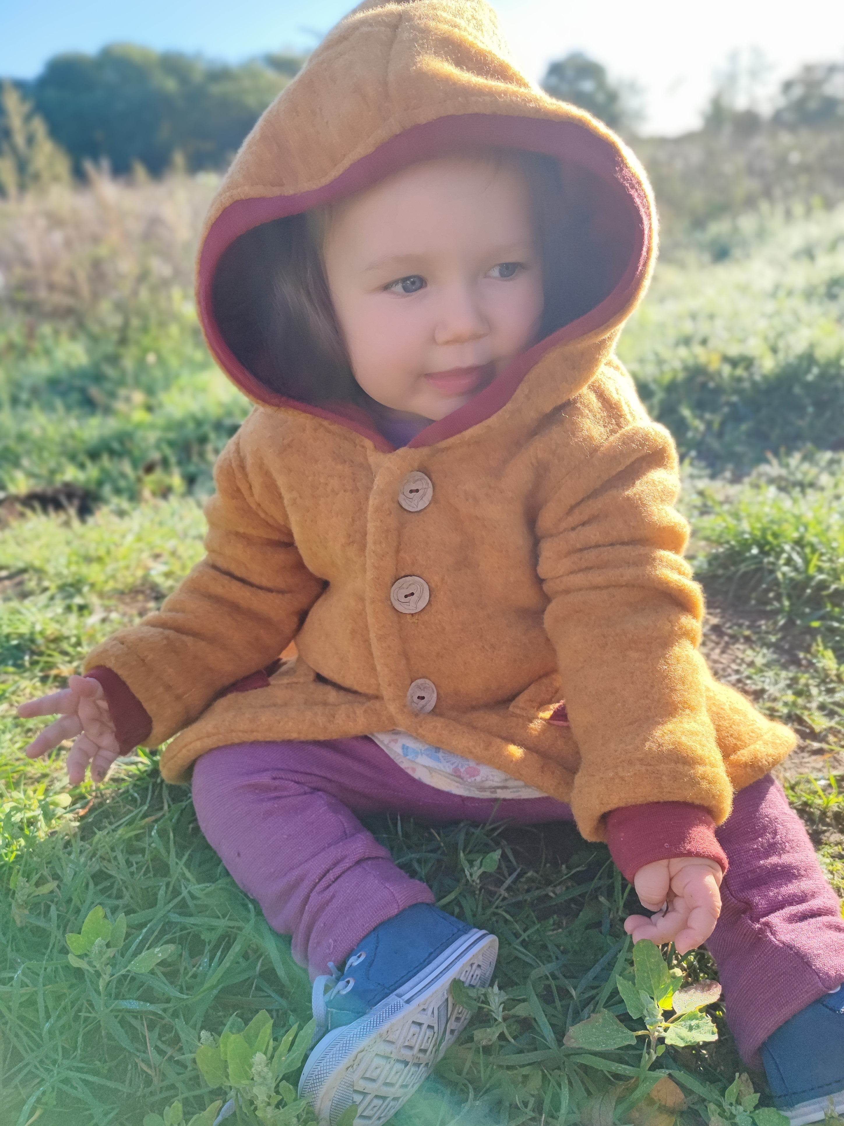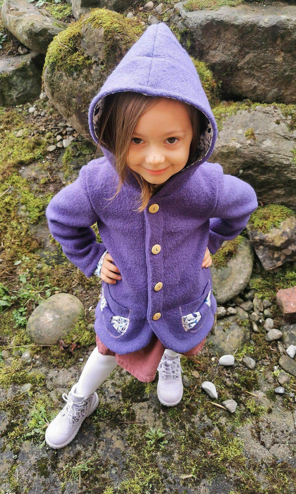 Ausgelegt ist der Schnitt sowohl auf Woll-/ Fleece, Woll-Walk und Softshell. Füttern kann man ihn z.B. wunderbar mit Woll-/Jersey, Woll-/Frottee oder Wolle-Seide.