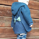 ist ein zauberhafter Schnitt für kleine Ladys mit Stil. Die große Schleife am Rücken und/oder an den Taschen lassen den Mantel verspielt wirken. Die riesige Kapuze in spitzer oder runder Form lädt zum einkuscheln an kalten Tagen ein.