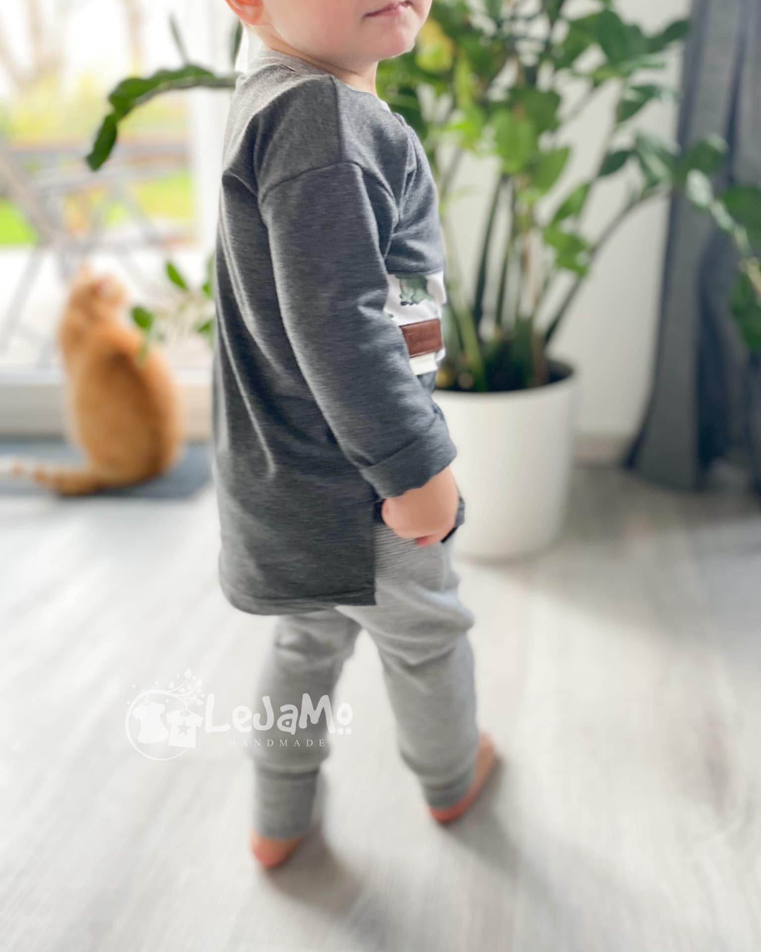 Der KnöpfchenKleine CARLO ist ein Schnittmuster für ein Longshirt mit überschnittenen Ärmeln. Es kann sowohl als Longshirt als auch in normaler Länge genäht werden.