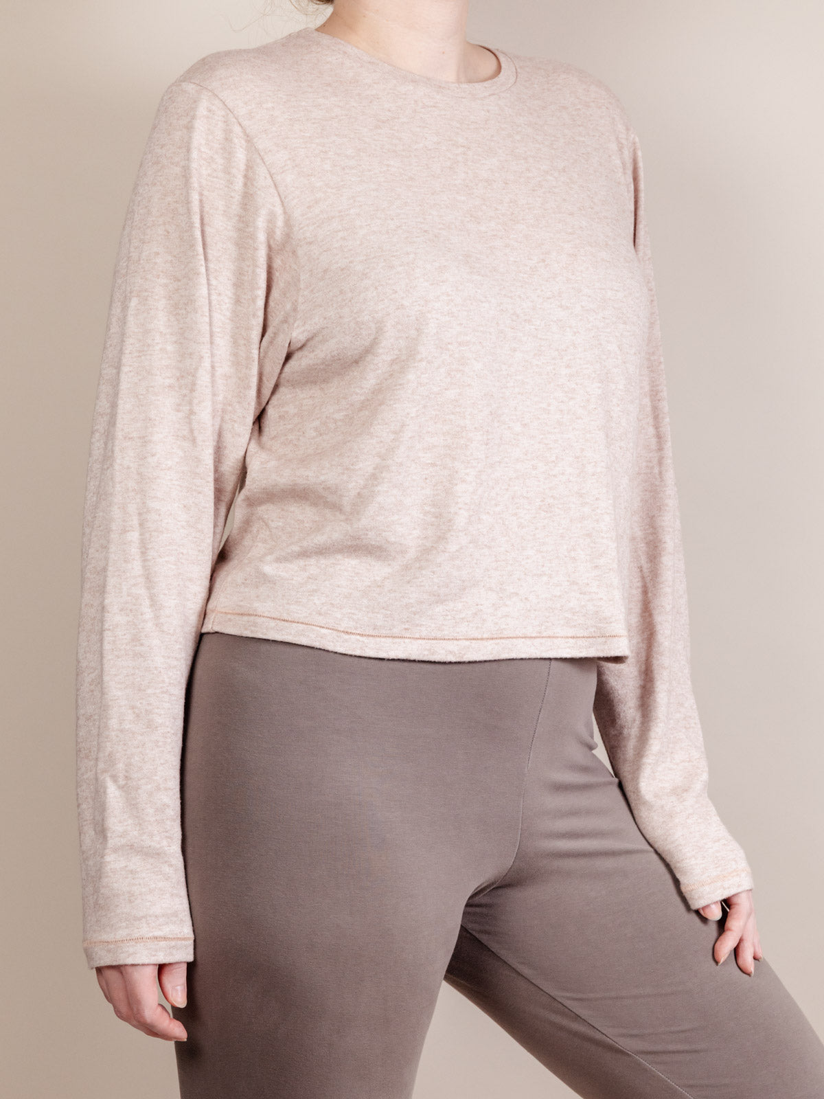 Das Longsleeve ist schlicht, zeitlos und angenehm zu tragen. Der Schnitt ist locker, aber nicht weit – ideal für jeden Tag. Alle Nähte können komplett mit der Overlock genäht werden, und die Flatlock-Nähte an den Säumen sorgen für extra Elastizität und eine sportlich-saubere Optik.