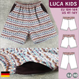„Luca Kids“ ist ein bequemes Shorts-Schnittmuster für Kinder, das mit einem elastischen Bündchen genäht wird – ideal zum Spielen udn Toben.