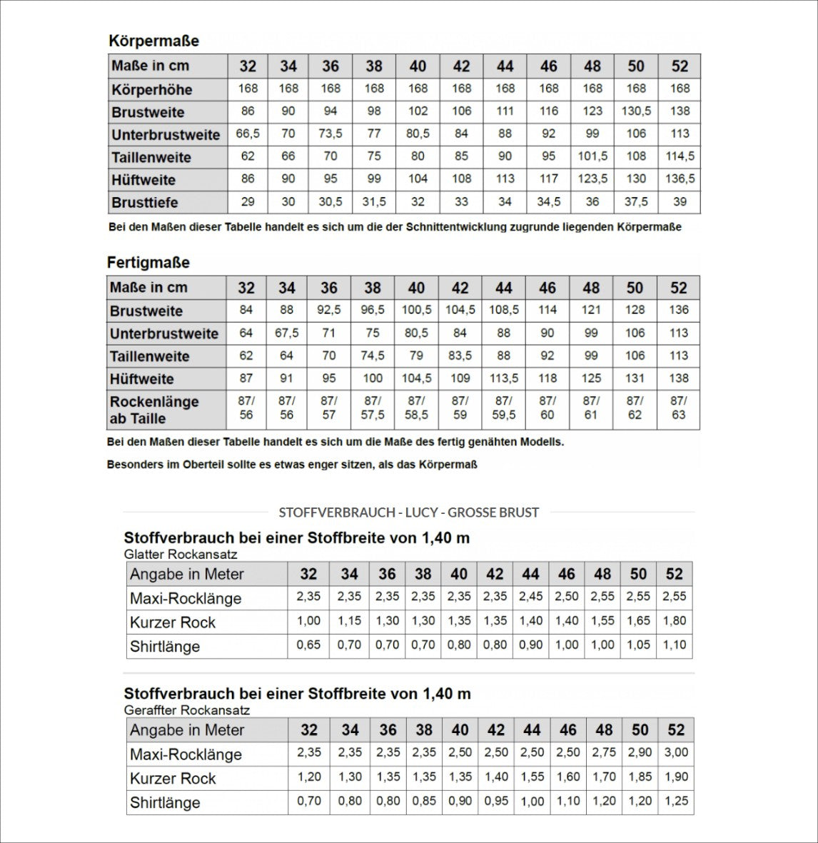 Größe 32 bis 52