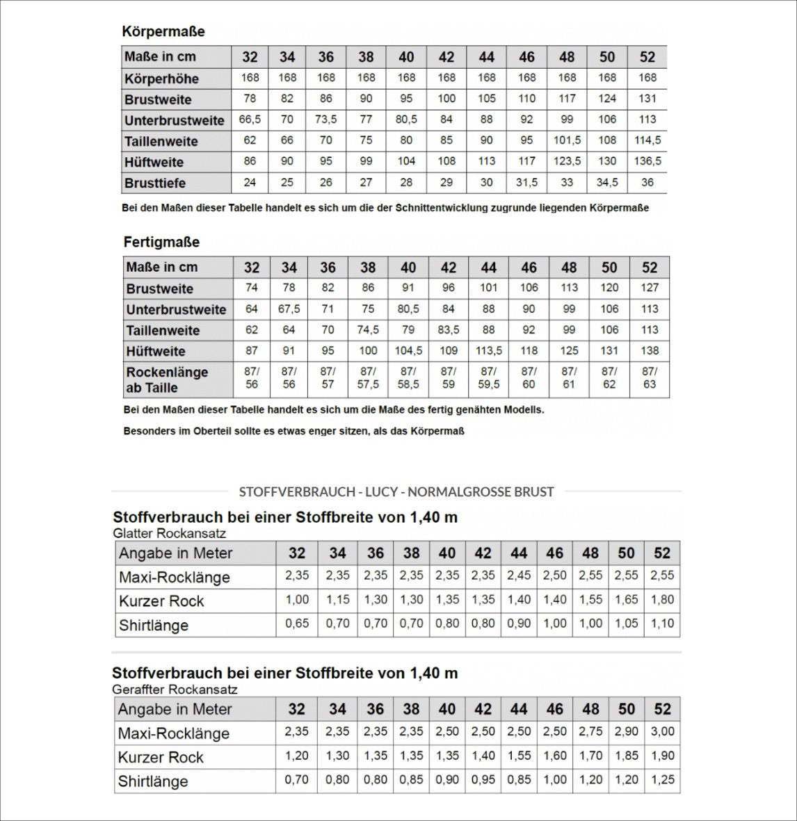 Für die normale Brust – Maßtabelle unbedingt beachten !!!