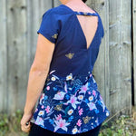 Weitere Optionen finden sich am Halsausschnitt, hier kann als Basic der normale Rundhals-Ausschnitt gewählt werden oder etwas ausgefallen ein tiefer V-Ausschnitt am Rücken. Optimal geeignet z.B. auch um Erwachsenenpanel zu vernähen oder das Muster des Lieblingsstoffs richtig zur Geltung zu bringen.