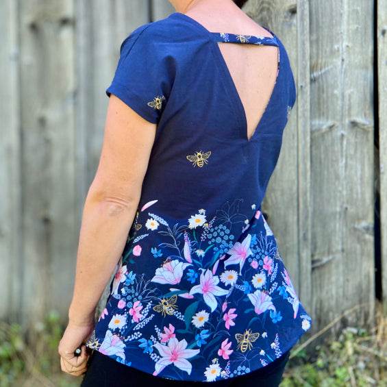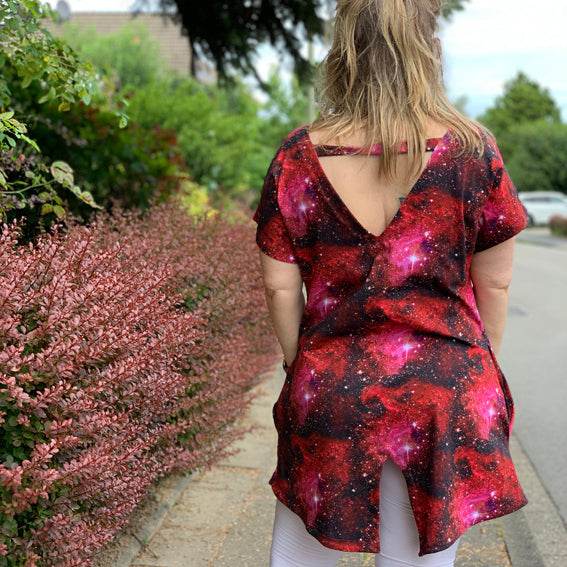 Es kann sowohl in Shirt- wie auch in Tunikalänge genäht werden, wahlweise hinten mit oder ohne Schwalbenschwanz (Ausschnitt unten) sowie Nahttaschen.