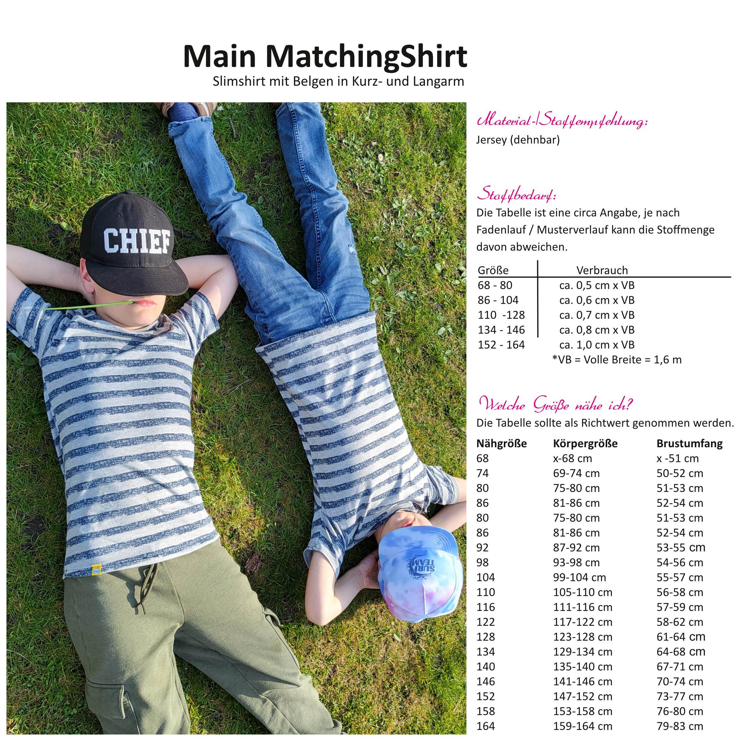 Main MatchingShirt ist ein Schnittmuster für ein T-Shirt das perfekt für schlanke Kinder geeignet ist.