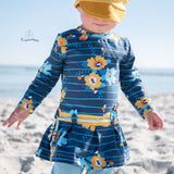 Das Main PleatedDress ist ein niedliches Schnittmuster für ein Kleid mit tief sitzenden Faltenröckchen inkl. 3/4 Main Matching Pants - Schnittmuster für die schmale Hose zum drunterziehen.