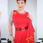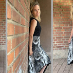 - Der luftig schwingende Rock wird leicht gerafft an das Oberteil genäht. Ein zusätzlicher Gummi hält die optimale Position von Oberteil zu Rockteil.