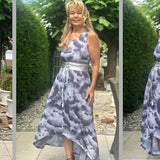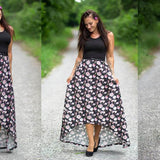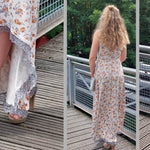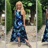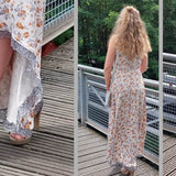 Marcellina ist ein ärmelloses Maxikleid mit einem femininem Oberteil und einem luftigen Rock.