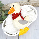 Die Gans Gisela ist ein einfach gehaltenes Schnittmuster, das auch für Anfänger ideal geeignet ist. Schnabel und Flügel werden appliziert, so ist die Gans auch für die kleinsten Kinderhände geeignet.
