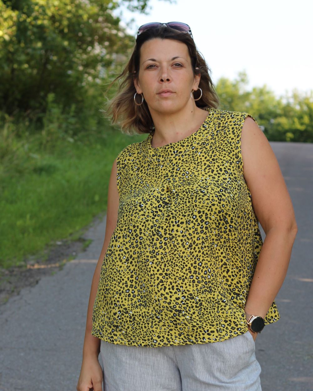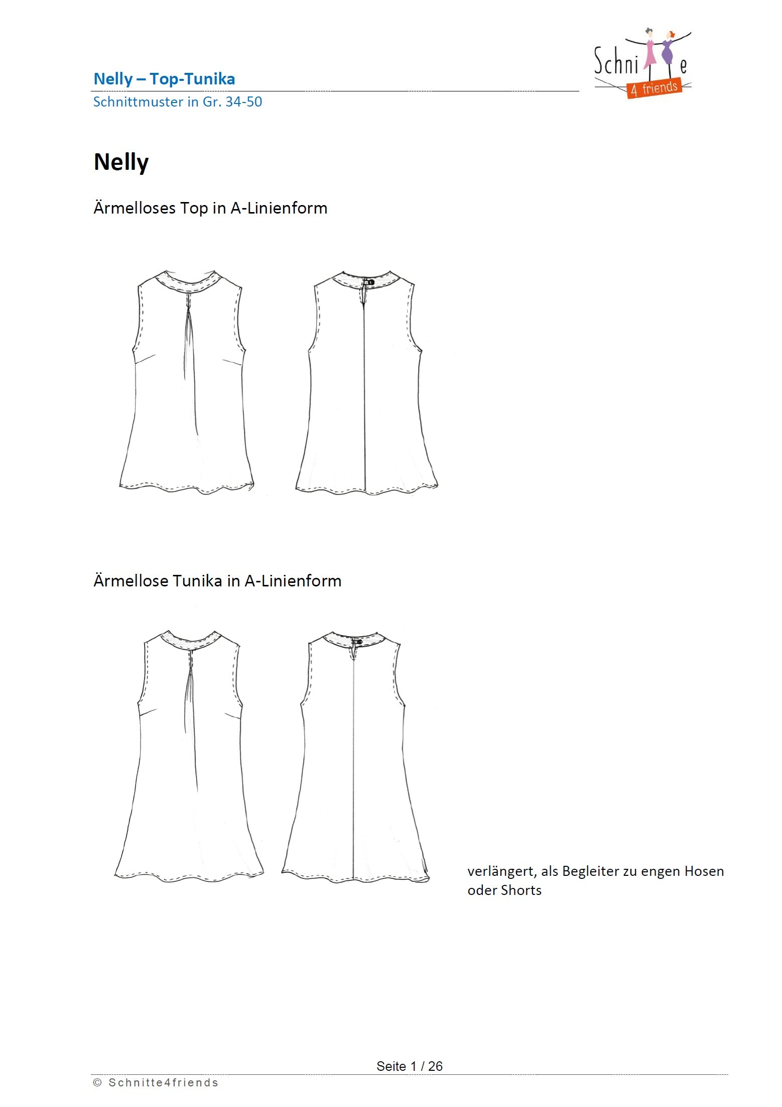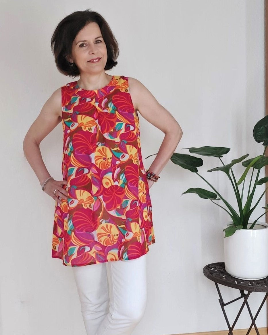 Nelly kann auch in Tunika-Länge genäht werde, ideal über schmale Hosen und Shorts.