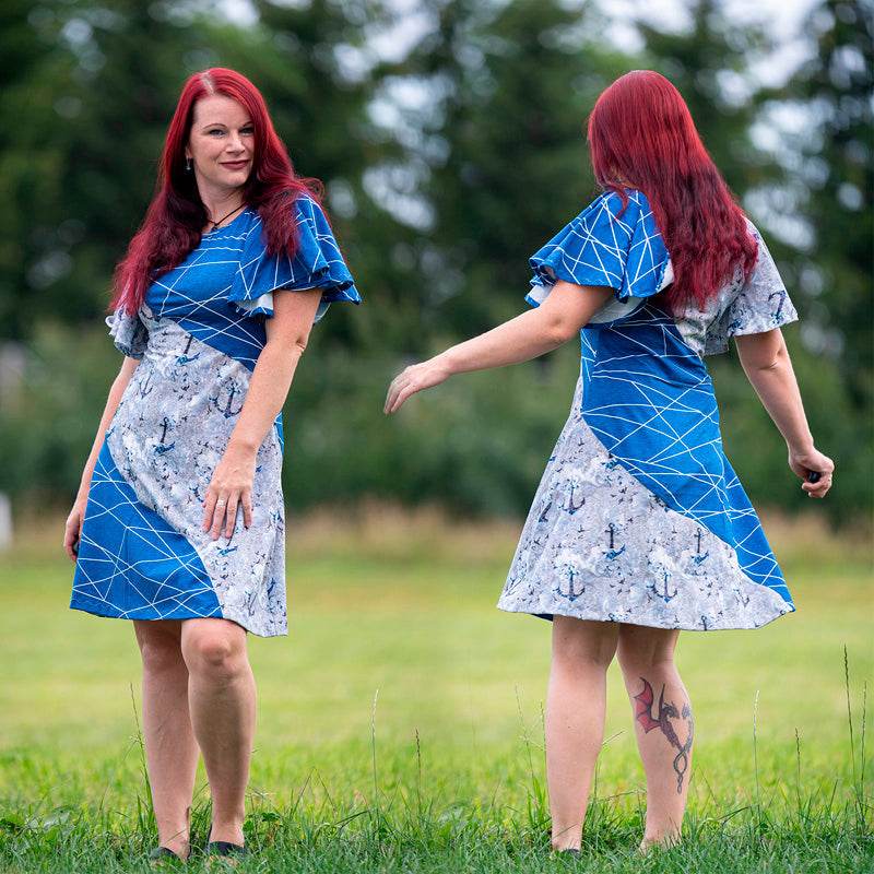 Dieses Kleid vervollständigt die Cool Curved Serie mit einem raffinierten Kleid oder einer schönen Tunika, die selbsverständlich auch die geniale Wellenteilung haben. Ein großer Auftritt ist euch mit diesem Kleid garantiert - denn hier kommt das Spiel von Farben, Mustern und gegebenenfalls auch hübschem Tüddelkram besonders gut zur Geltung. Egal ob schrillbunt oder dezent, mit diesem Schnittmuster wird es auf lange Sicht ganz sicher nicht langweilig.