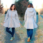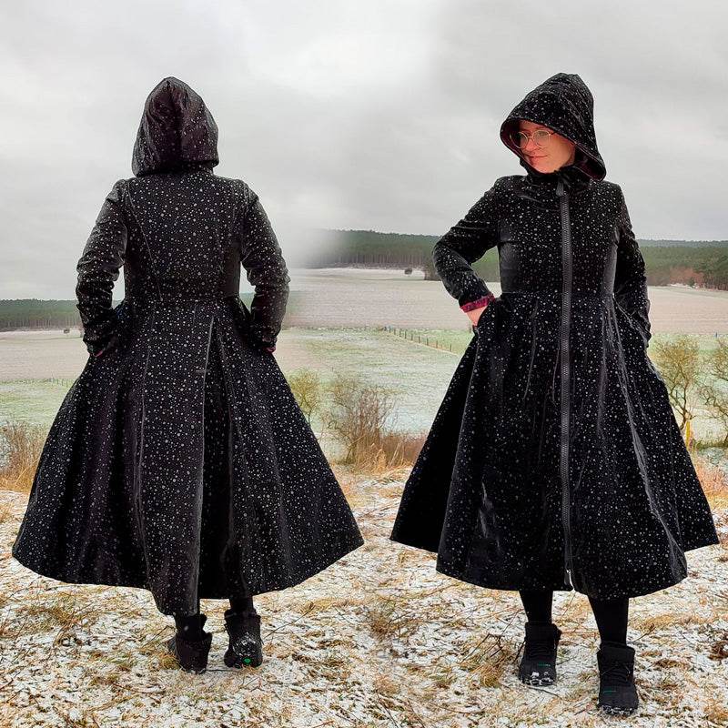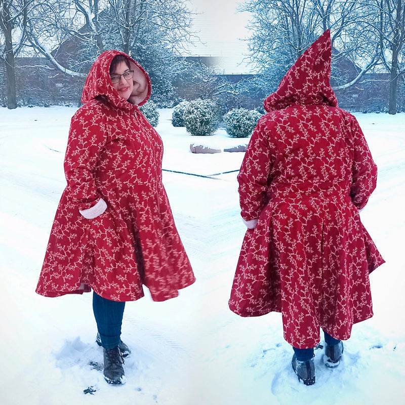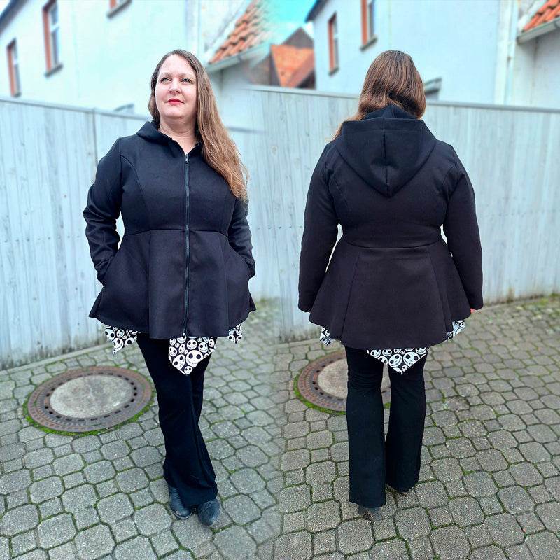 Die Embrace war mein erstes Jackenschnittmuster für Damen und ich war schon lange nicht mehr so zufrieden damit. Deshalb hat sie jetzt ein rundum Makeover bekommen. Was ihr jetzt bekommt ist ein wunderschönes Mantelschnittmuster, dass durch den ausgestellten Rockteil wunderschön, elegant und warm ist. Außerdem eignet es sich hervorragend als Mantel über Pettycoatkleidern. Auch im Alltag macht die Embrace einfach eine tolle Figur und ihr könnt sie durch die verschiedenen Varianten wunderschön an eure Vorlieben anpassen.