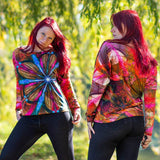 Das Fledermausshirt ist durch seine Weite sehr bequem zu tragen und ein absolutes Wohlfühlshirt. Selbstverständlich könnt ihr ein einfaches Shirt nähen, das durch seine Stoffzusammenstellung punktet und seinen großen Auftritt durch die Besonderheit der Teilung hat. Aber ihr könnt durch allerlei Varianten, durch Tüddelkram und deine Persönlichkeit auch ein Kunstwerk zaubern, dass euch ganz besonders strahlen lässt. Ob Webware oder dehbare Stoffe wie Jersey, Sommersweat oder French Terry, Die Fledi ist aus einer Vielfalt an Stoffen nähbar.