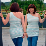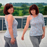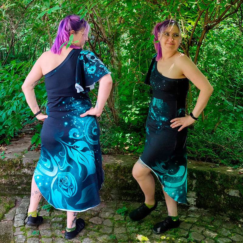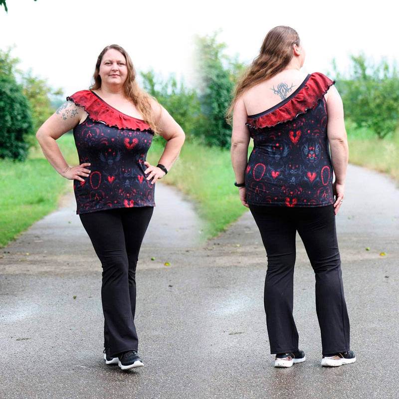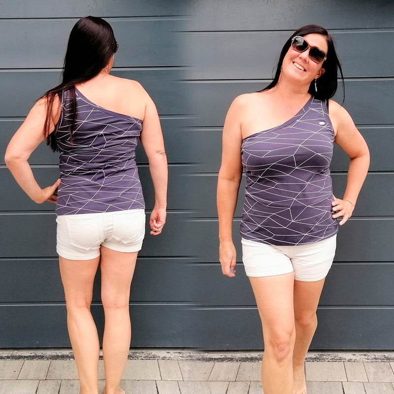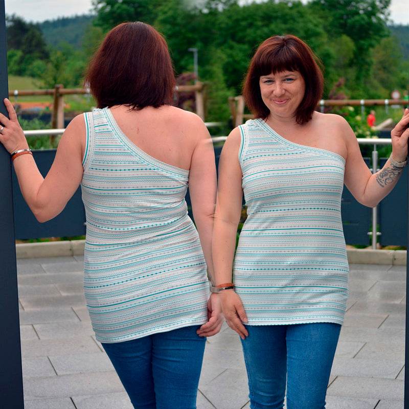 - Als Oneshoulder oder auch komplett schulterfrei nähbar