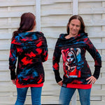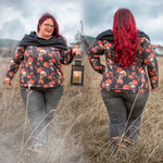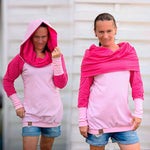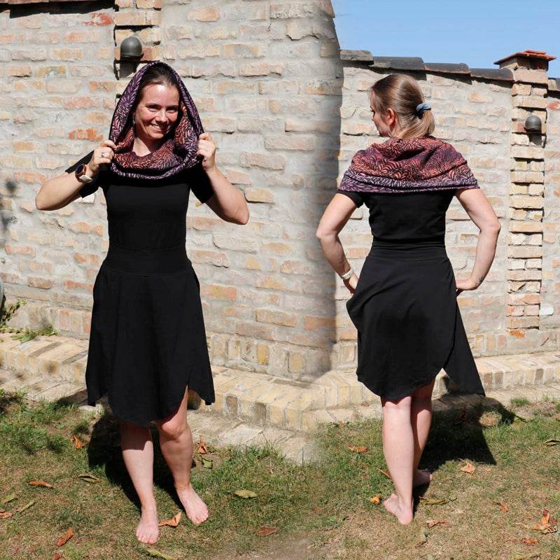 - zwei Krägen für den weiten Ausschnitt (Schultervolant und Kapuzenkragen)