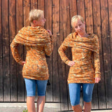 - durch die vielen Optionen ist es nahezu unmöglich genaue Angaben zum Stoffverbrauch zu machen, generell geschätzt solltet ihr mit 6 m (Jersey/French Terry) selbst in 54 jegliche Konstellationen nähen können.(Da auch ein Kleid möglich ist, ist die Angabe so hoch, ein Pulli braucht natürlich weniger Stoff)