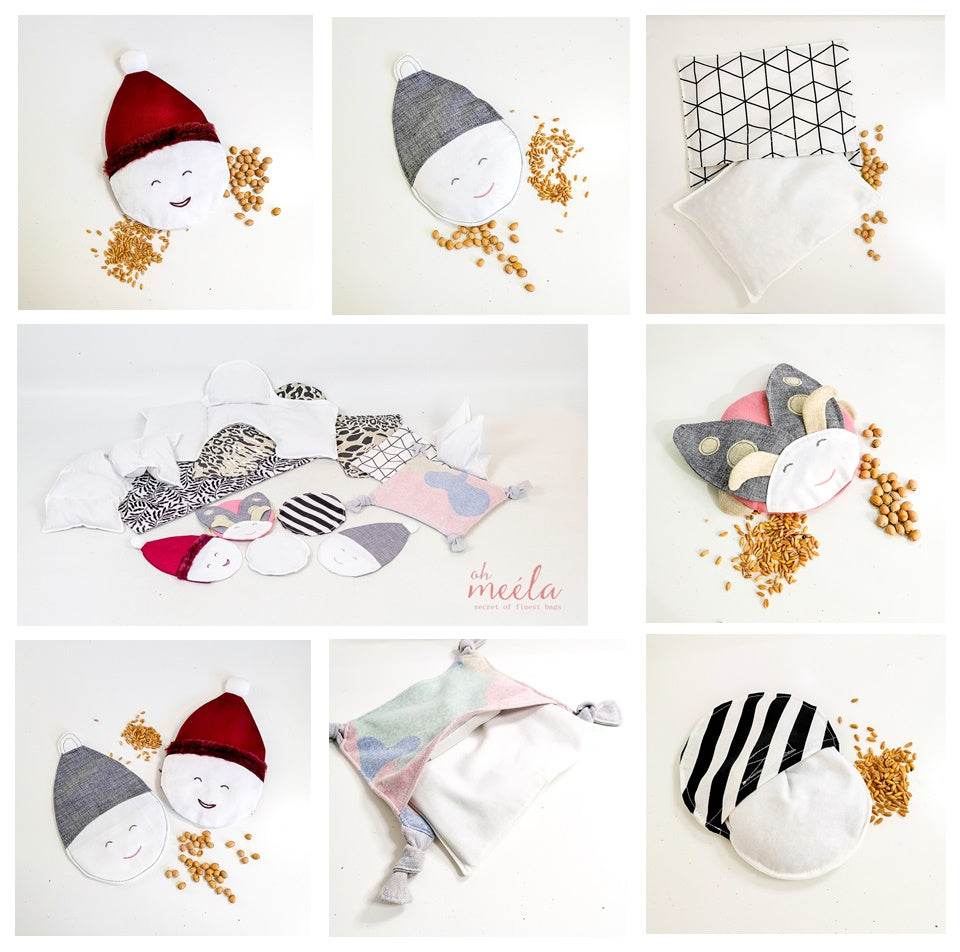 Ganz schlicht in rund, eckig oder in einer besonderen Form direkt für den Schulter-Nackenbereich sowie mit oder ohne Bindeband, besonders praktisch bei Schulterschmerzen oder für uns Frauen bei PMS. Aber auch ein zuckersüßer Marienkäfer- und Winterkind/Nikolaus-Bezug erwarten dich. Es ist wirklich für jeden etwas dabei.