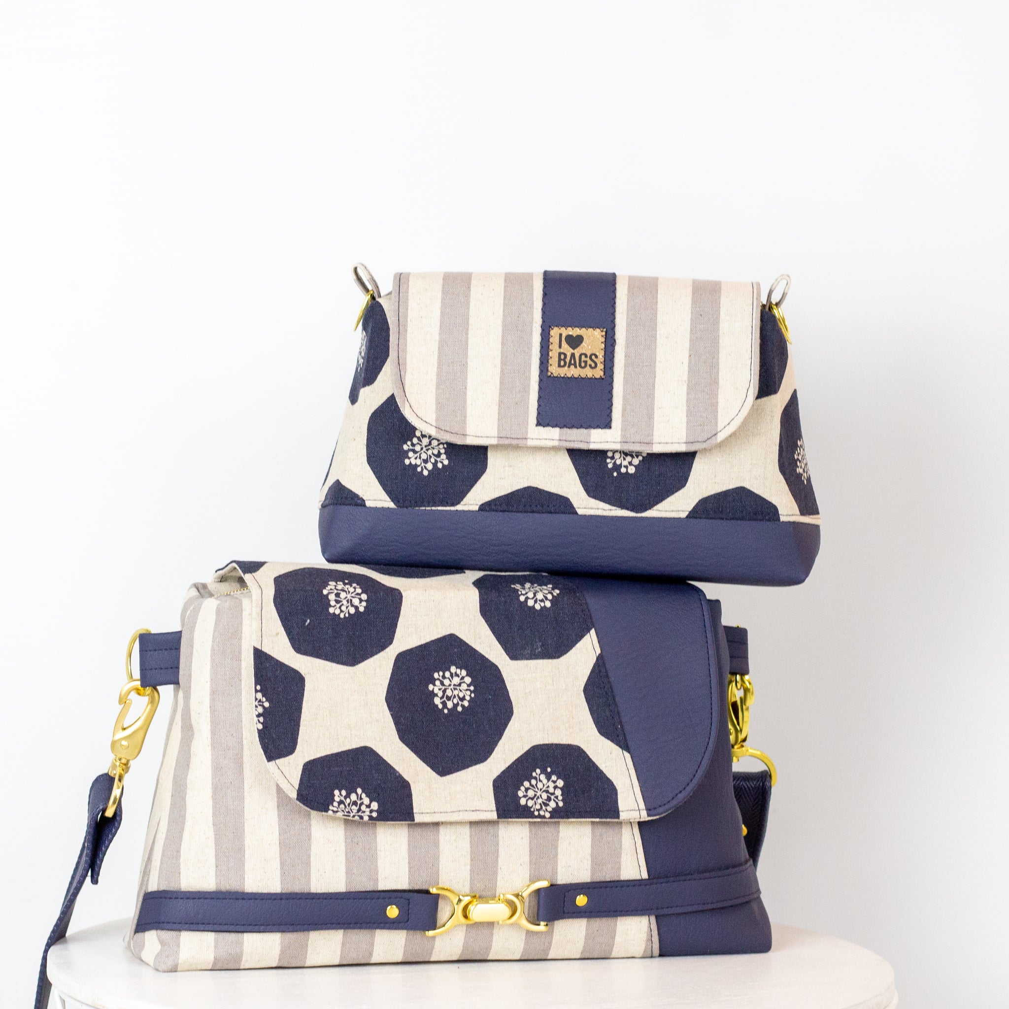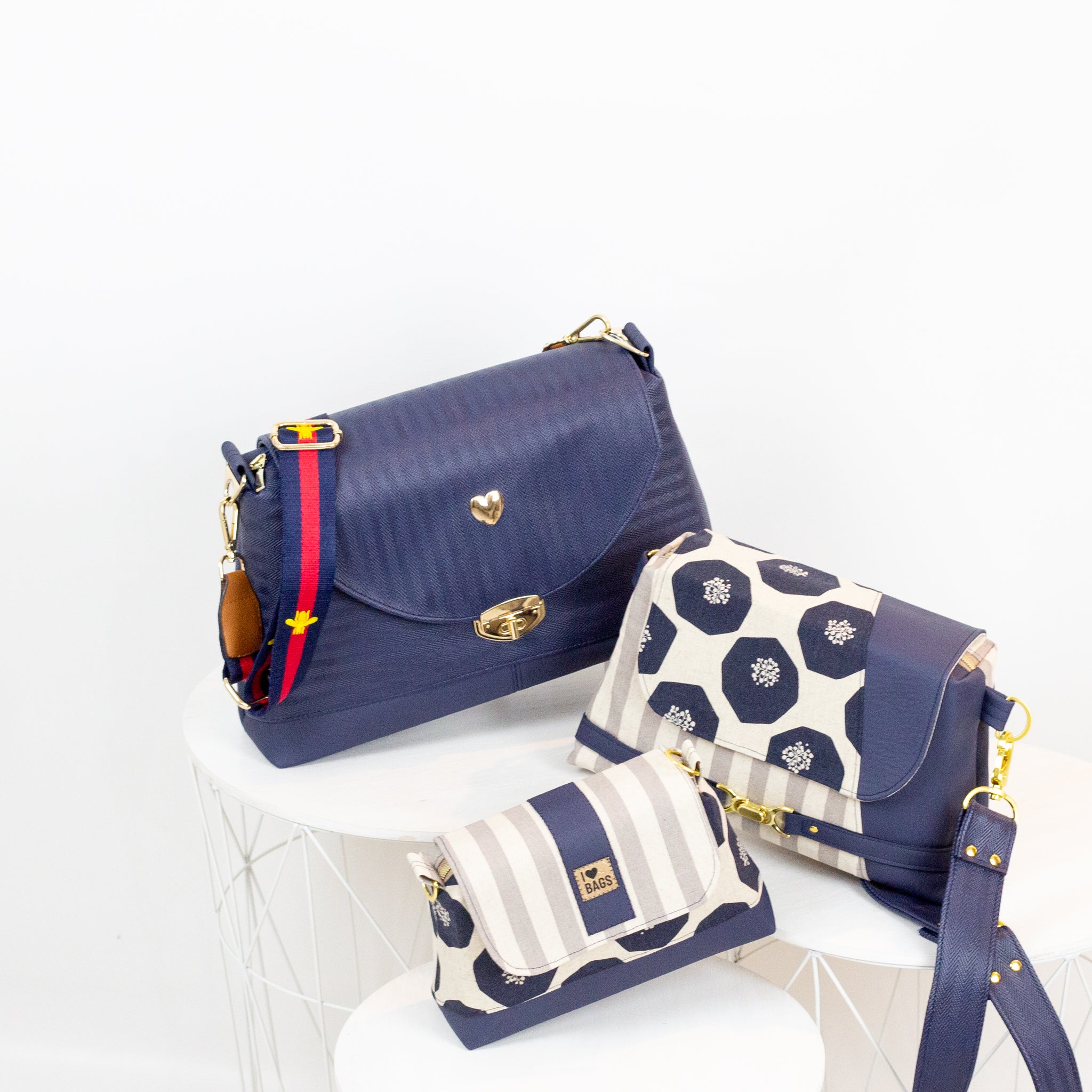 I will guide you through all the sewing steps in this tutorial with detailed, well-illustrated instructions. In addition to the patterns for each size, you will find a pattern for cutting out the various straps. The seam allowance of 1 cm (3/8”) is included, and grainlines as well as all important markings are indicated.