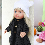 Cosi ist ein niedlicher, verspielter Mantel. Der Mantel wird vorne mittels eines Reißverschlusses geschlossen. Das Besondere an Cosi ist die raffinierte Teilung der Vorderteile und des Rückenteils. Durch die Faltentechnik in den Ärmel, den unteren Vorderteilen und im unteren Rückenteil wirkt der Mantel sehr mädchenhaft. Gleichzeitig wird dadurch eine schöne Weite erzeugt, die es der Puppenmama erleichtern sollte, den Mantel über Puppis Tageskleidung an zu ziehen. Das Design wird durch eine gefütterte Kapuze abgerundet.