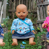 Wickelshirt Mia ist ein fingurnahes Longsleeve in Wickeloptik. Durch die Wickeloptik lässt sich das Longsleeve bequem über den Kopf der Puppe anziehen.