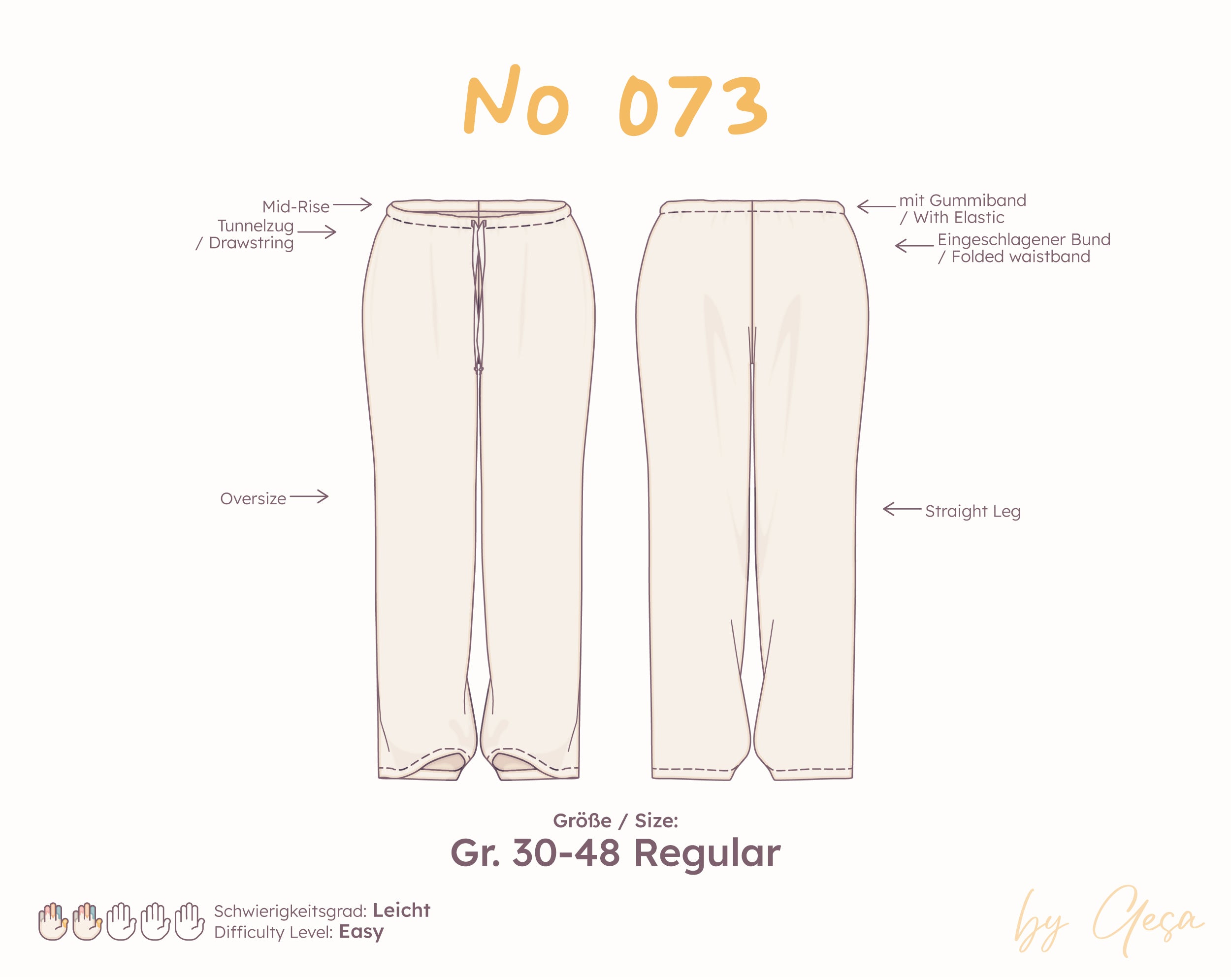 Oversized Pyjama-Hose mit Tunnelzugbund (Straight Leg) – Schnittmuster (PDF) – Regular Gr. 30–48