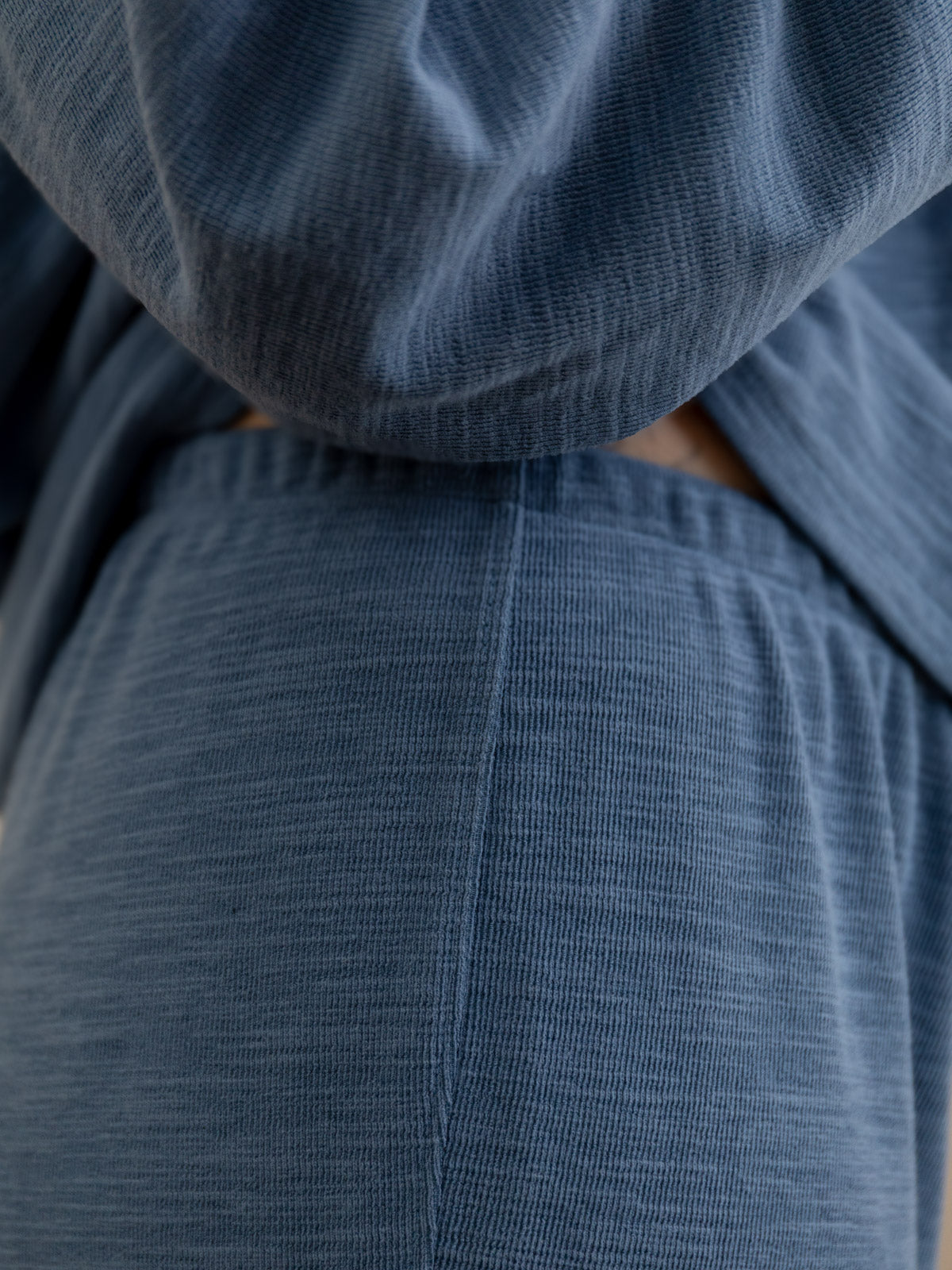 Wenn du es nachts besonders gemütlich brauchst und tagsüber trotzdem nicht im „Schlafmodus“ rumlaufen willst: Diese oversized Pyjama-Hose mit Tunnelzugbund (Straight Leg) ist genau dafür gemacht. Sie sitzt als Mid Rise bequem auf der Hüfte, hat ein weites, gerades Bein und kommt ganz bewusst ohne Taschen aus. Das macht sie schön clean und richtig angenehm zu tragen.