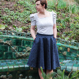 Der Cherry Blossom ist ein zeitloser ¾-Tellerrock mit versetzten Eingrifftaschen, Unterrock und Reißverschluss – ein wahres Kombinationswunder für Alltag und besondere Momente. Ob aus schlichten Stoffen oder mit auffälligem Print: Der Rock passt sich deinem Stil an und ergänzt deine Garderobe perfekt.
