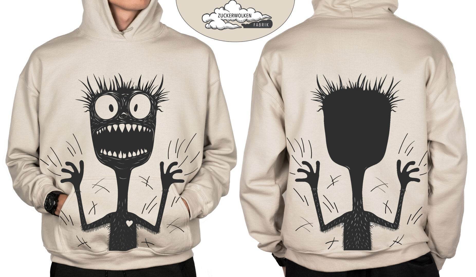 Unser Hugo ist sowohl das perfekte niedlich-gruselige Monster für Halloween, als auch perfektes Abbild vieler Gemütszustände, denen du in Verbindung mit den Statements (z.B. auf dem Rücken oder Ärmel) besonderen Ausdruck verleihen kannst.