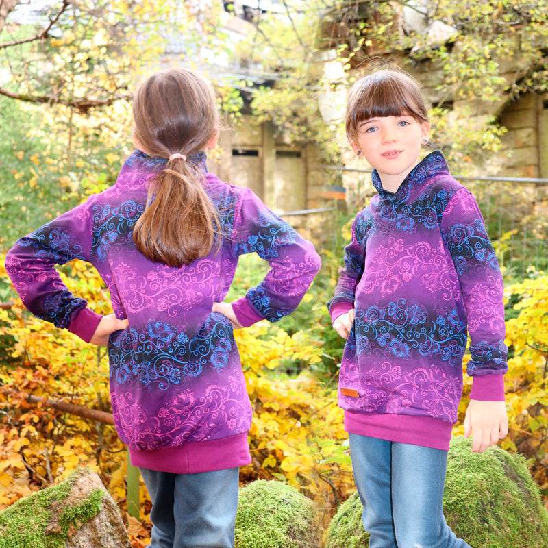 Damit Du möglichst lange etwas von dem Schnittmuster hast, bekommt ihr die Pulliparade, kurz Pupa, Kids komplett in den Größen 68-164 ohne Unterteilung in Midi und Maxi.