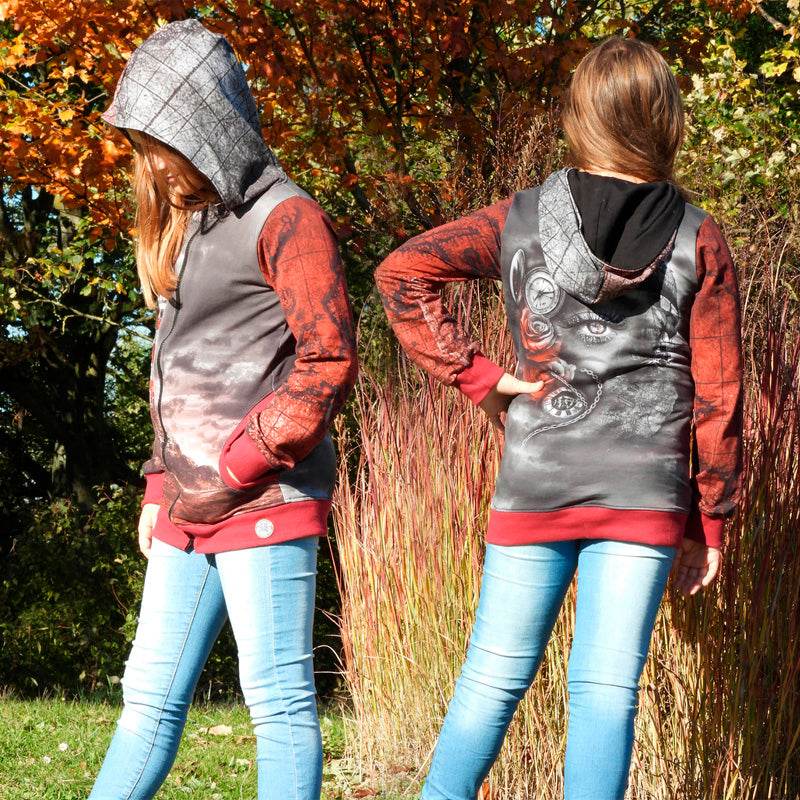 Dabei spielt es keine Rolle, ob Ihr Basic nähen wollt oder größere Herausforderungen beim nähen braucht. Durch das ausgeklügelte Baukastensystem sind nahezu unendlich viele Varianten denkbar. Das Schnittmuster wurde im Probenähen umfangreich getestet und sogar durch Tutorials erweitert – dadurch ist sogar eine Jacke machbar oder ein Longpulli, der sich z. B. mit den Stulpings auch hervorragend als Kleidchen macht.
