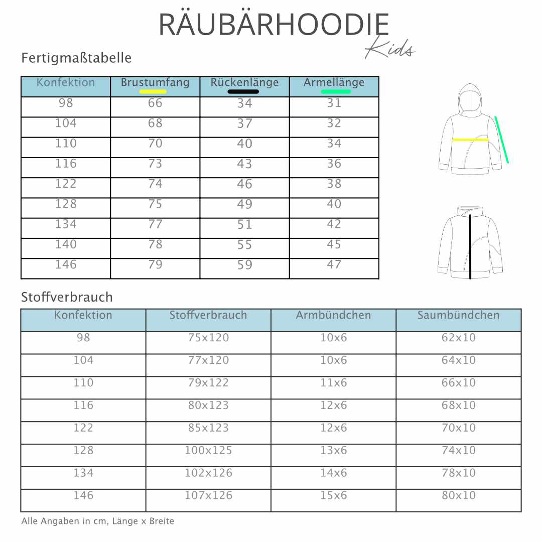 - inklusive Hoodie-Schnittmuster für die Größen 98-146