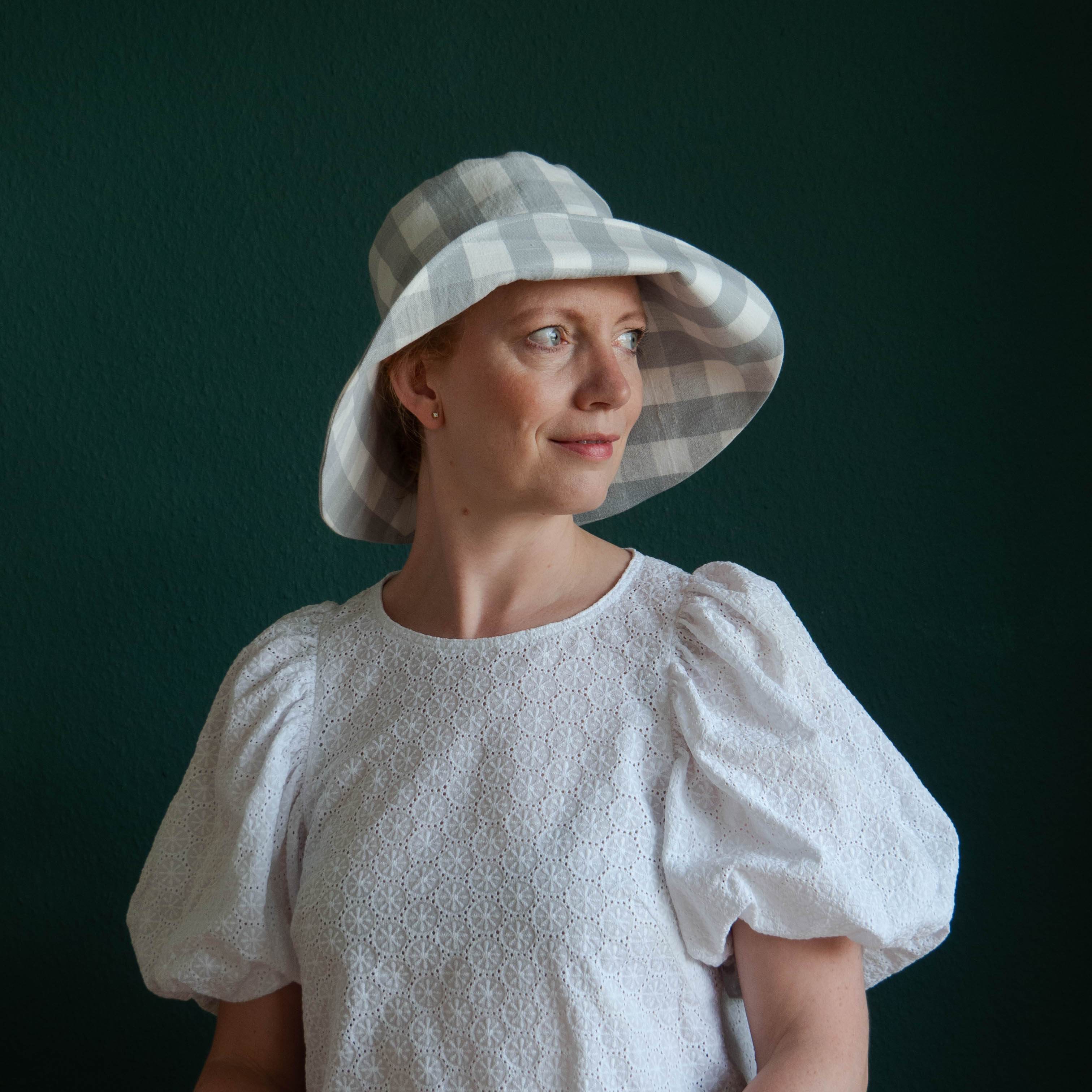 Add a special touch to your Ray hat by sewing it in a grippy linen fabric, with a floral pattern or in a beautiful gingham.