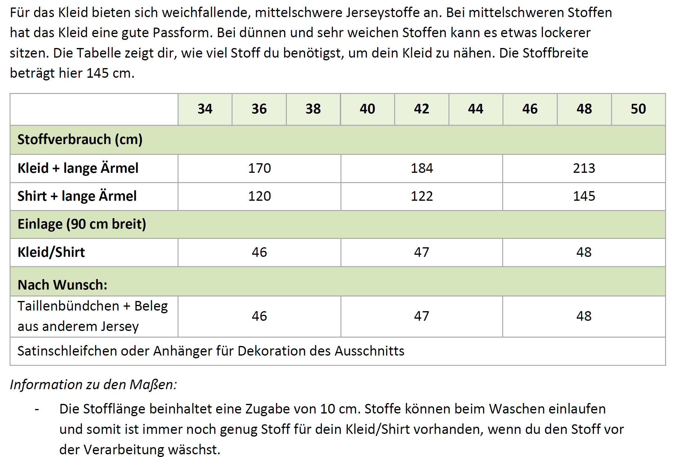 - Größen: EU 34–50 / US 4–20 (inkl. 0,7 cm Nahtzugabe)