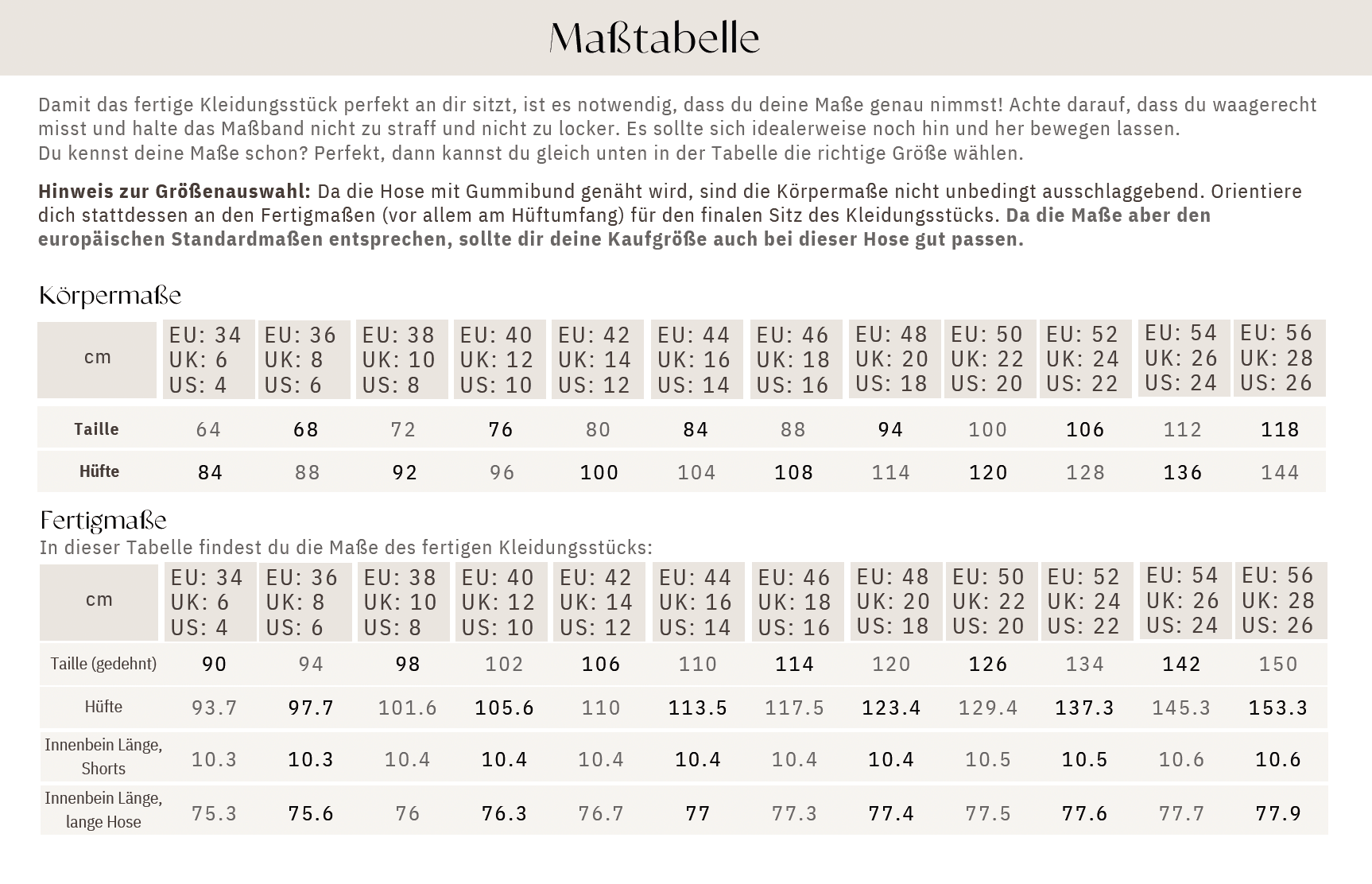 - Das Schnittmuster in 12 Größen (EU 34-56)