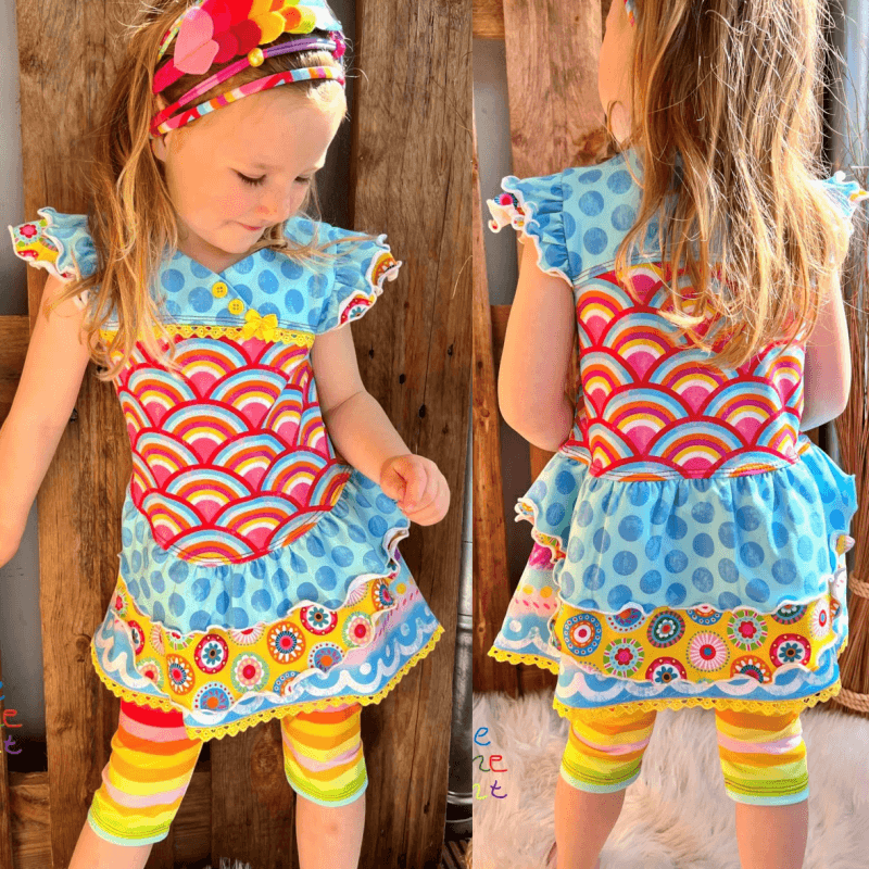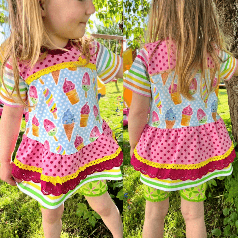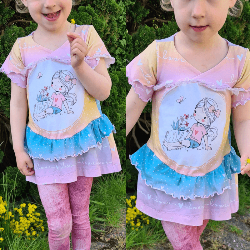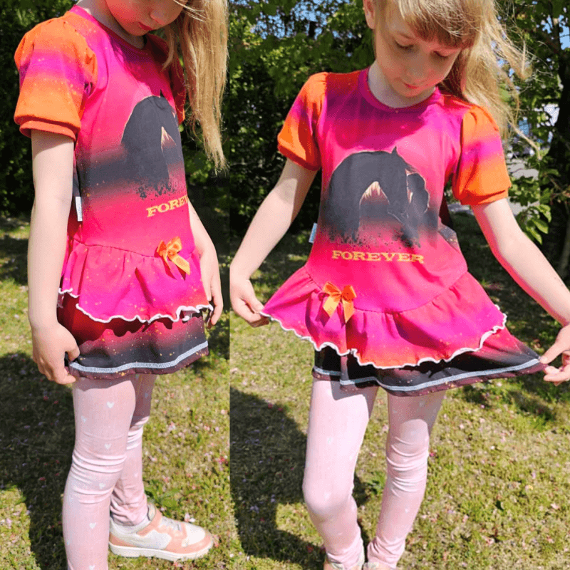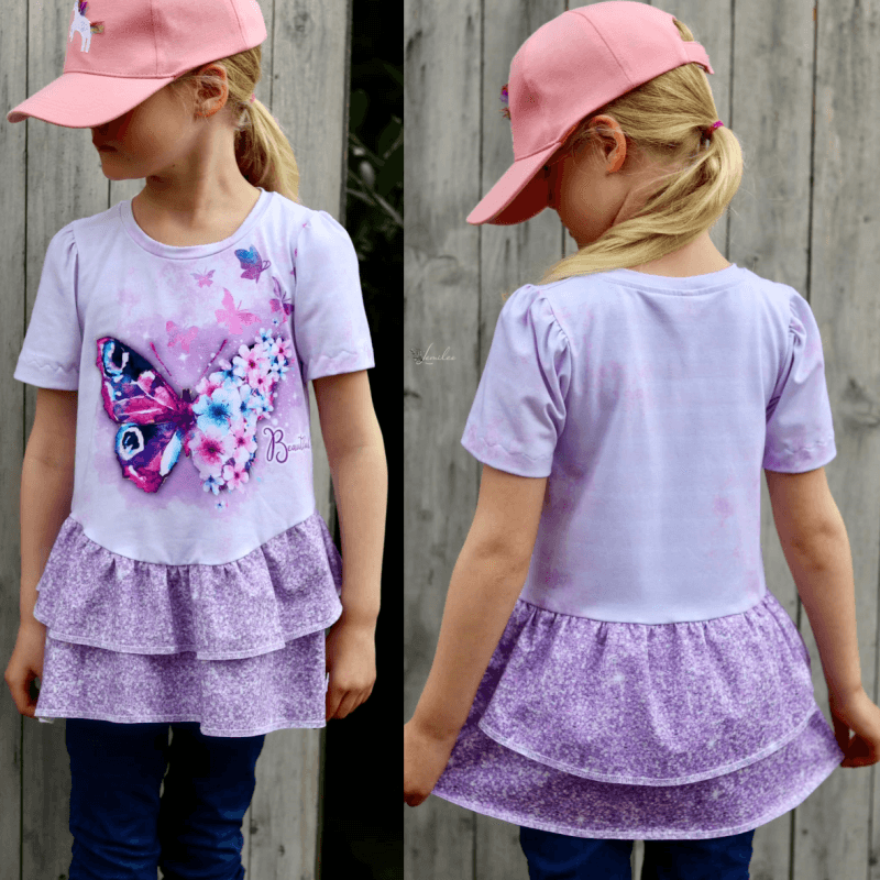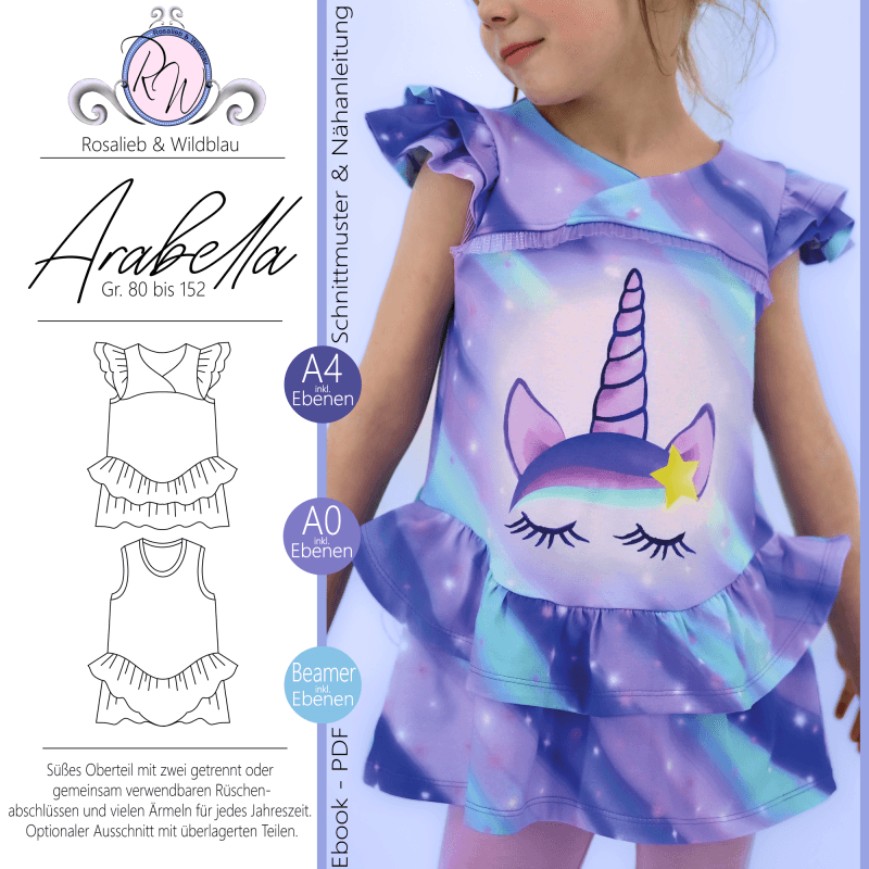 Das Schnittmuster ist in Echtgröße (du nähst hier nach echter Körpergröße) gradiert und enthält keine Nahtzugabe. Es umfasst die Größen 80 bis 152 und ist damit für eine Körpergröße zwischen 80 und 157cm geeignet. In den Dateien findest du die A4-Versionen zum Ausdrucken, eine Großdruck-Datei sowie die Beamerdatei - alle Versionen inkl. Ebenen zum Ein- und Ausblenden der Größen. Arabella ist auf Jersey ausgelegt. Der Abschluss des Schnittmusters ist zum Teil auf einen Saumbelegausgelegt, welcher nicht als Schnittmusterteil sondern als Tutorial enthalten ist.