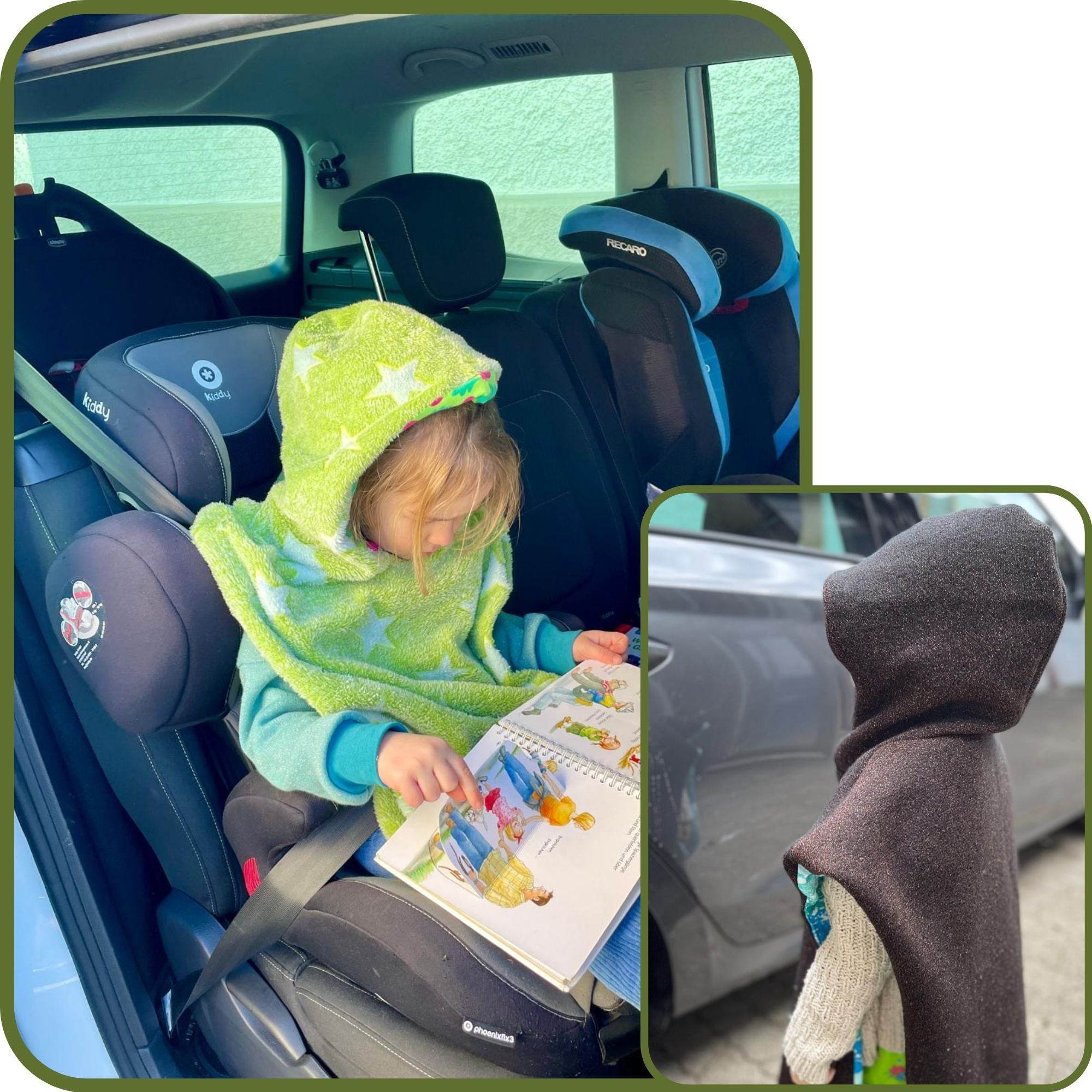 Er bietet nicht nur Wärme, sondern auch Sicherheit, da der Sicherheitsgurt unter dem Poncho getragen wird. Mit einem praktischen Reißverschluss oder Knöpfen lässt sich der Poncho bequem schließen. Für den Sommer verwandelt er sich in einen stylischen Badeponcho. Entdecke die wandelbare Vielseitigkeit des Labels Tüftelfuchs!