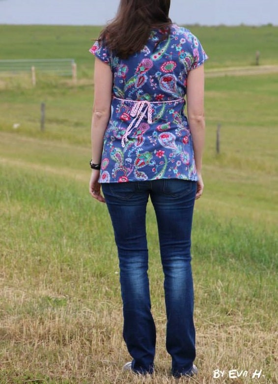 Mit verschiedenen Ärmelvarianten (Langarm, Kurzarm, ¾-Arm, ¾-Arm mit Bündchen) kannst du das Design individuell anpassen. Der Schnitt ist auf dehnbare Stoffe ausgelegt und kann problemlos verlängert werden, um eine Kleider-Variante zu nähen. Schau dir unbedingt die Designbeispiele in der Bildergalerie an!