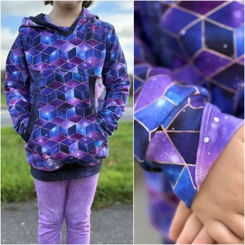 Das Schnittmuster ist in Echtgröße (du nähst hier nach echter Körpergröße) gradiert und enthält eine Version ohne Zugaben und eine Version mit den Einzelteilungen inkl. Zugaben (0,7cm Nahtzugabe) und Nahtlinie. Es umfasst die Größen 80 bis 164 und ist damit für eine Körpergröße zwischen 80 und 169 cm geeignet. In den Dateien findest du die A4-Versionen zum Ausdrucken, eine A0-Datei (Großdruck) sowie die Beamerdatei - alle Versionen inkl. Ebenen zum Ein- und Ausblenden der Größen und wie bereits erwähnt je in einer eigenen Version mit oder ohne Zugaben. Badalu ist hauptsächlich auf French Terry ausgelegt und je nach Version für Fortgeschrittene aber auch Anfänger geeignet.