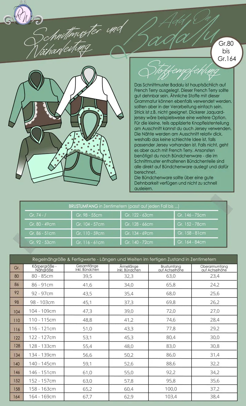 *Für Badalu sind dickere, gut dehnbare Stoffe vorgesehen. French Terry ist perfekt.
