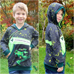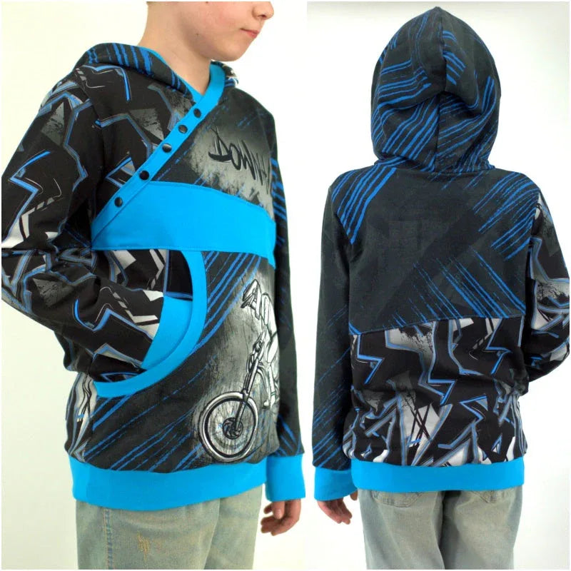 Das Schnittmuster ist in Echtgröße (du nähst hier nach echter Körpergröße) gradiert und enthält eine Version ohne Zugaben und eine Version mit den Einzelteilungen inkl. Zugaben (0,7cm Nahtzugabe) und Nahtlinie. Es umfasst die Größen 80 bis 164 und ist damit für eine Körpergröße zwischen 80 und 169 cm geeignet. In den Dateien findest du die A4-Versionen zum Ausdrucken, eine A0-Datei (Großdruck) sowie die Beamerdatei - alle Versionen inkl. Ebenen zum Ein- und Ausblenden der Größen und wie bereits erwähnt je in einer eigenen Version mit oder ohne Zugaben. Badalu ist hauptsächlich auf French Terry ausgelegt und je nach Version für Fortgeschrittene aber auch Anfänger geeignet.