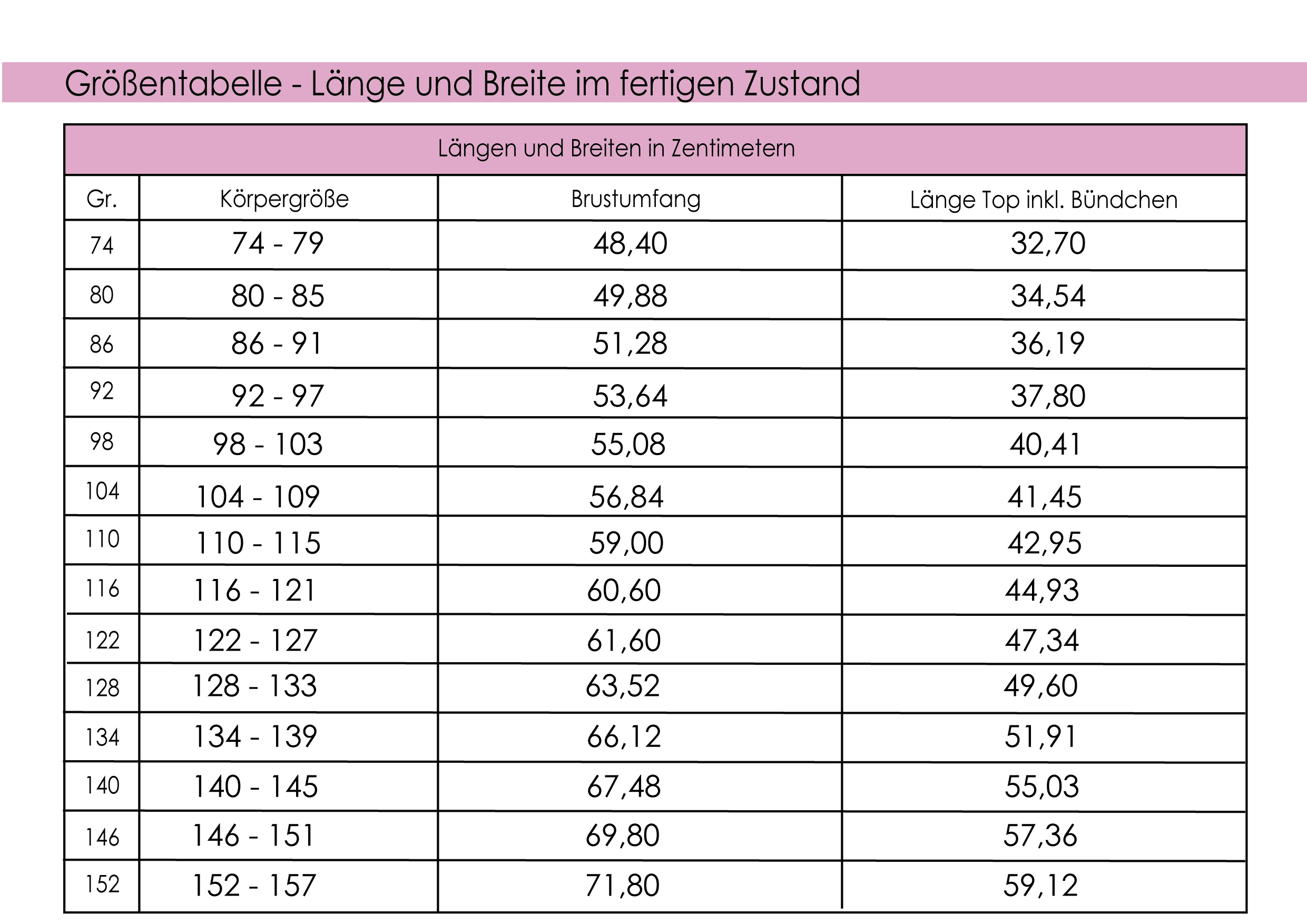 Schnittmuster Gr. 74 bis 152 A4 inkl. Ebenen