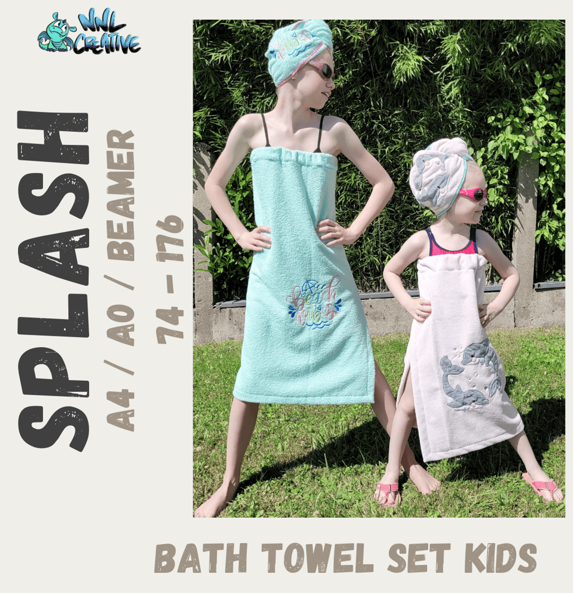 Digitales Schnittmuster "Bath Towel Set Splash Kids" Größe 74 - 176 - Das perfekte Saunakilt und Handtuch Turban Set für Kids