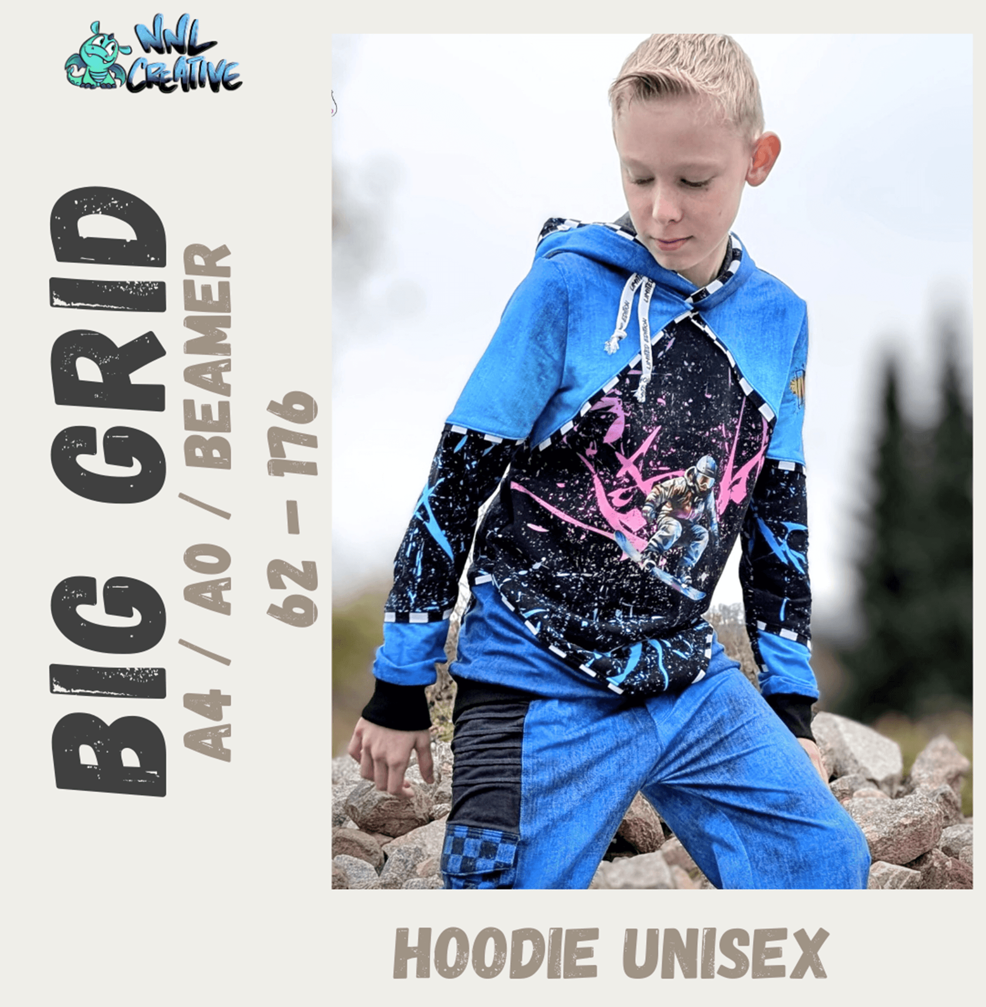 Digitales Schnittmuster "Big Grid Hoodie" Größe 62 - 176 * Dein kreatives Nähprojekt für stylische Kinder Hoodies
