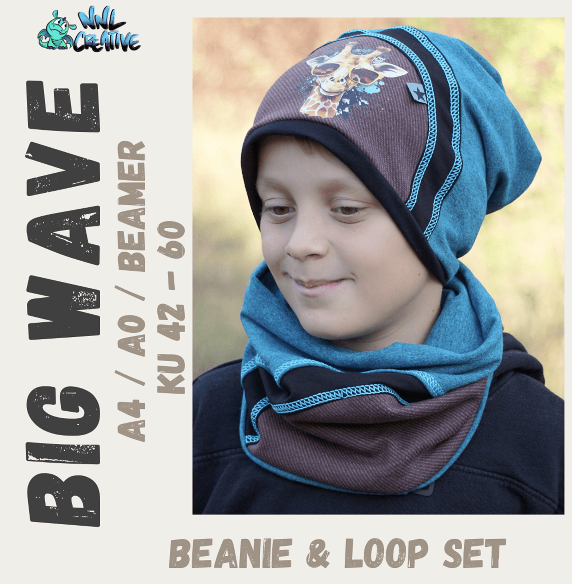 Digitales Schnittmuster "Big Wave Beanie & Loop Set" Größe KU 42-60 - Dein kreatives Nähprojekt für Beanies und Loops das ganze Jahr über