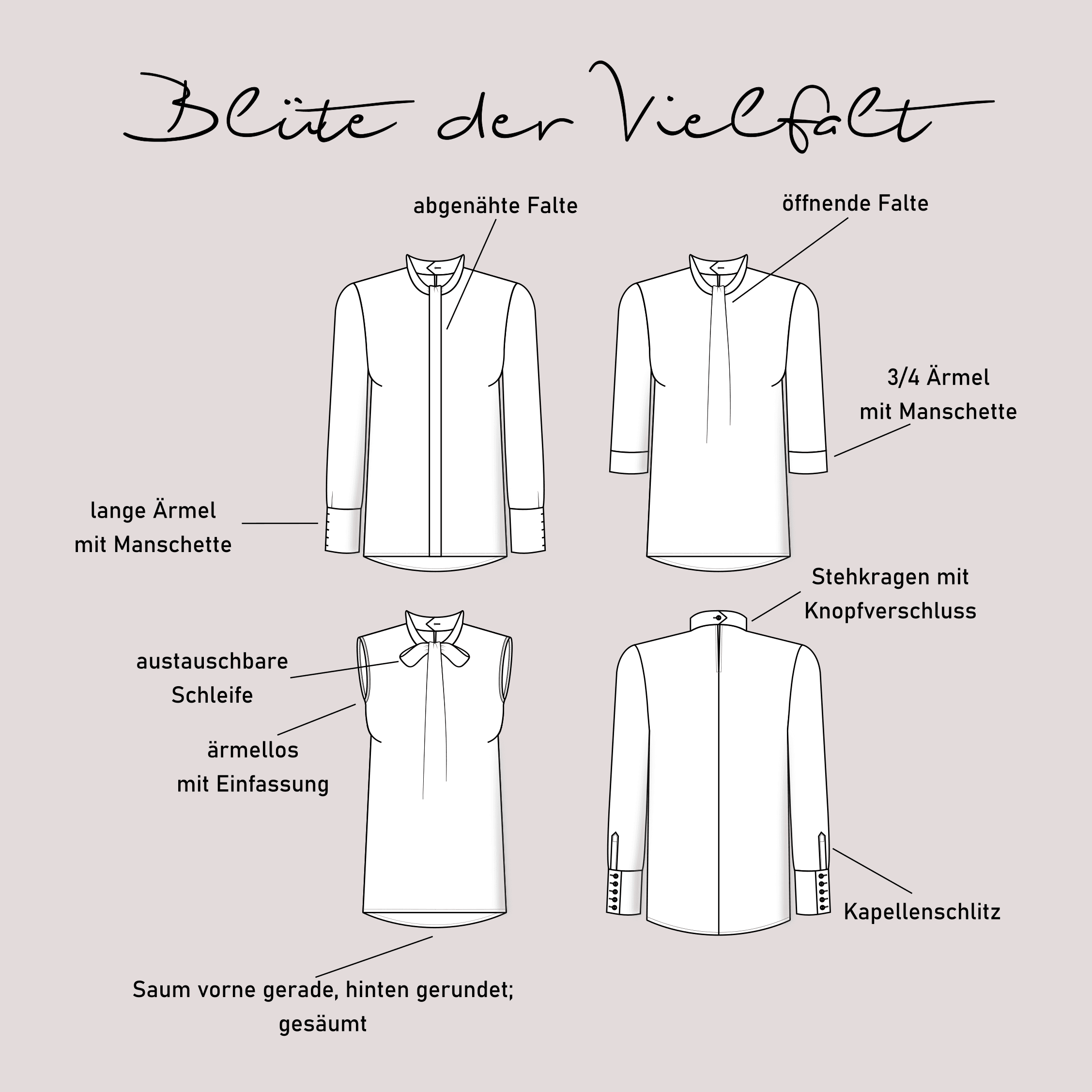 Schnittmuster Bluse „Blüte der Vielfalt“ Damen Gr. 32 - 62