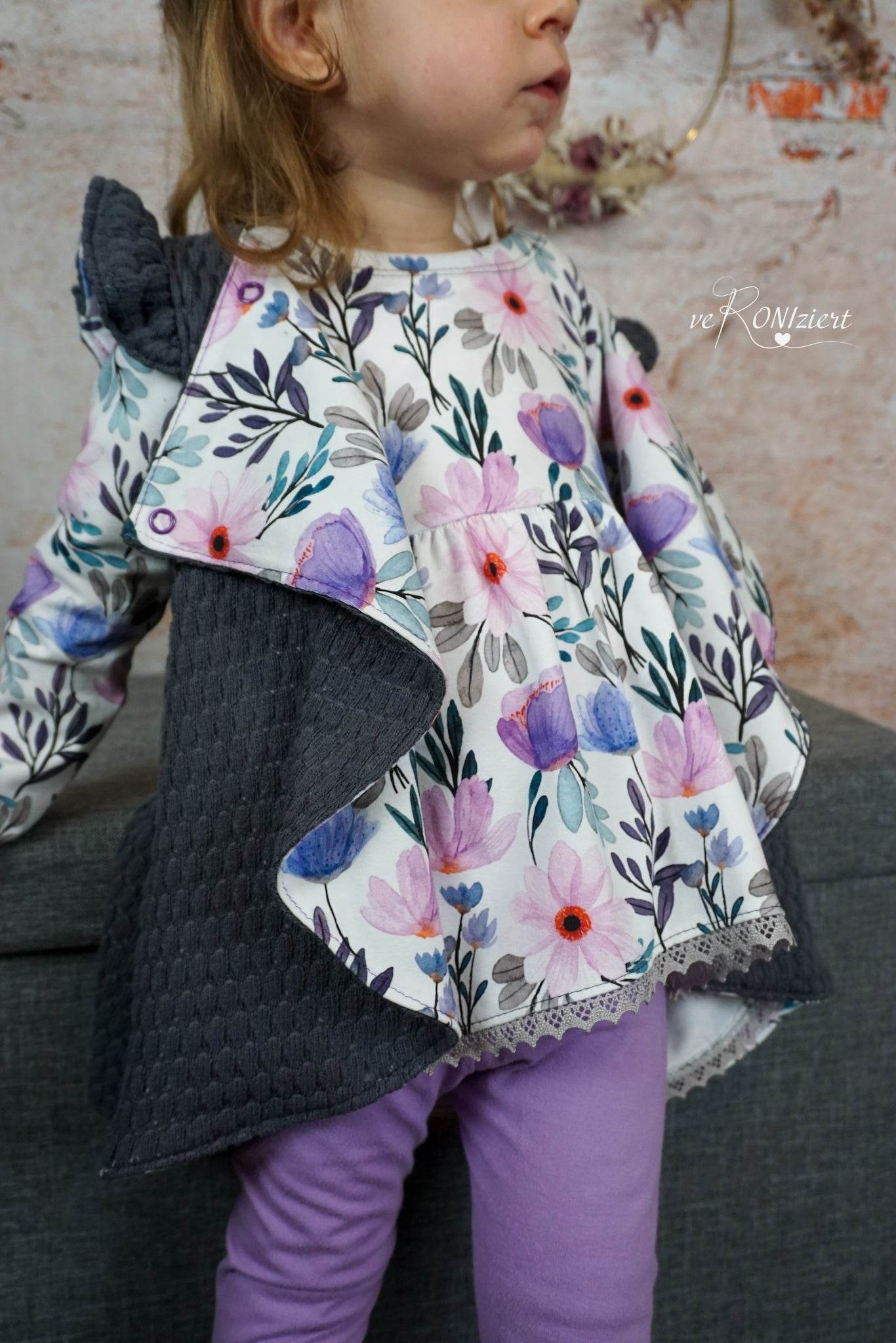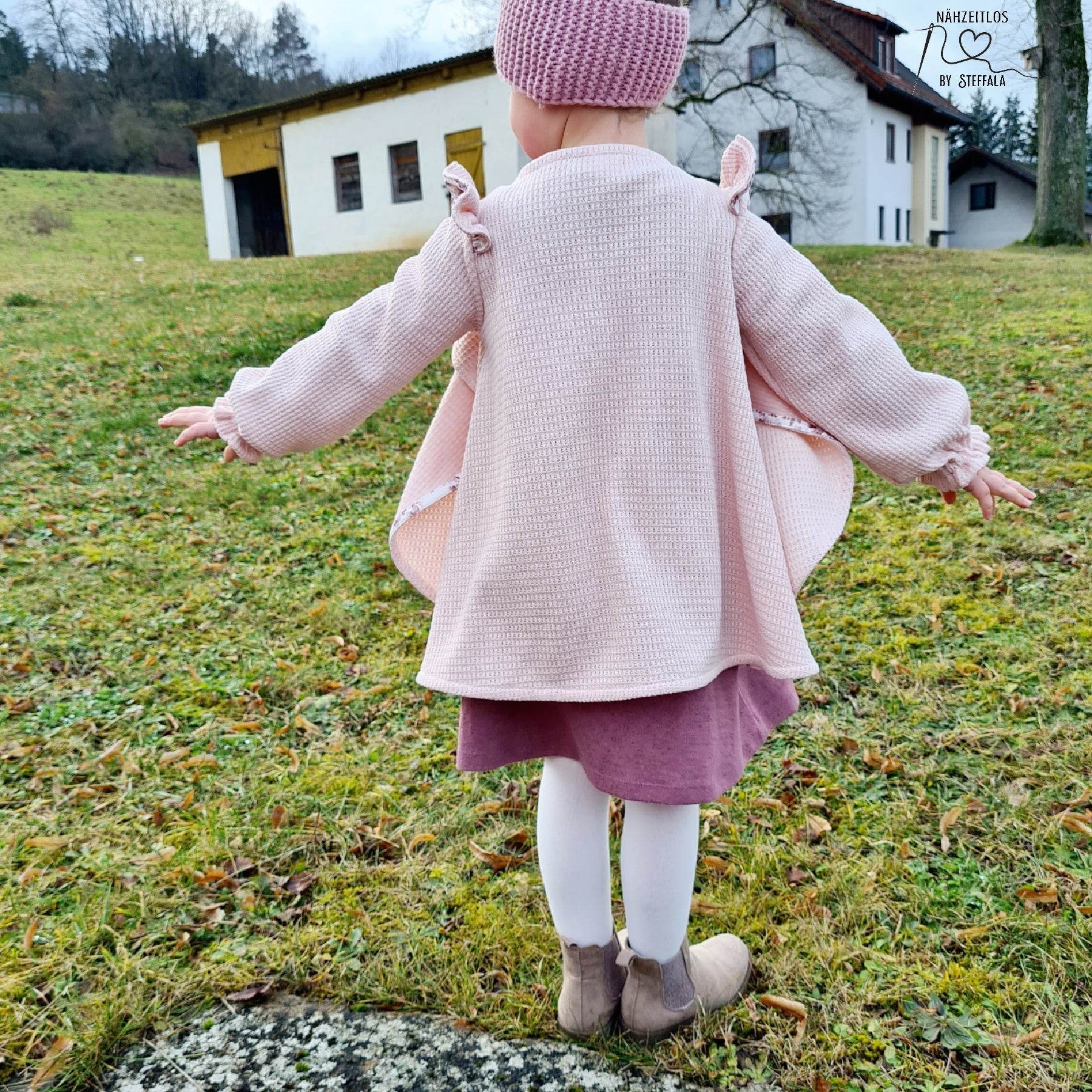 Mit diesem Schnittmuster kannst du den Cardigan Clara in den Größen 86-140 nähen – ideal für Kinder, die es genauso lieben, ihren Outfits das gewisse Extra zu verleihen.
