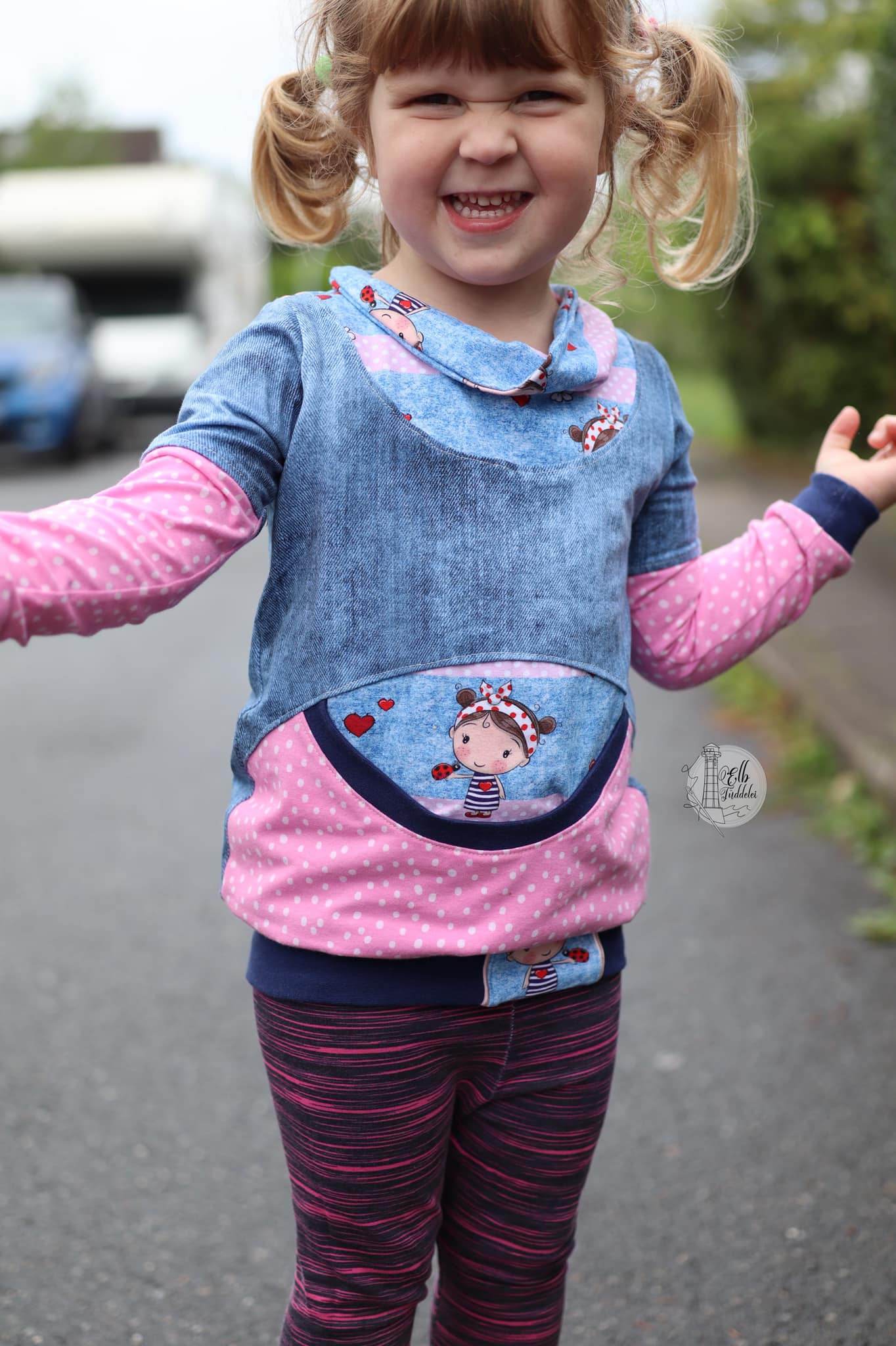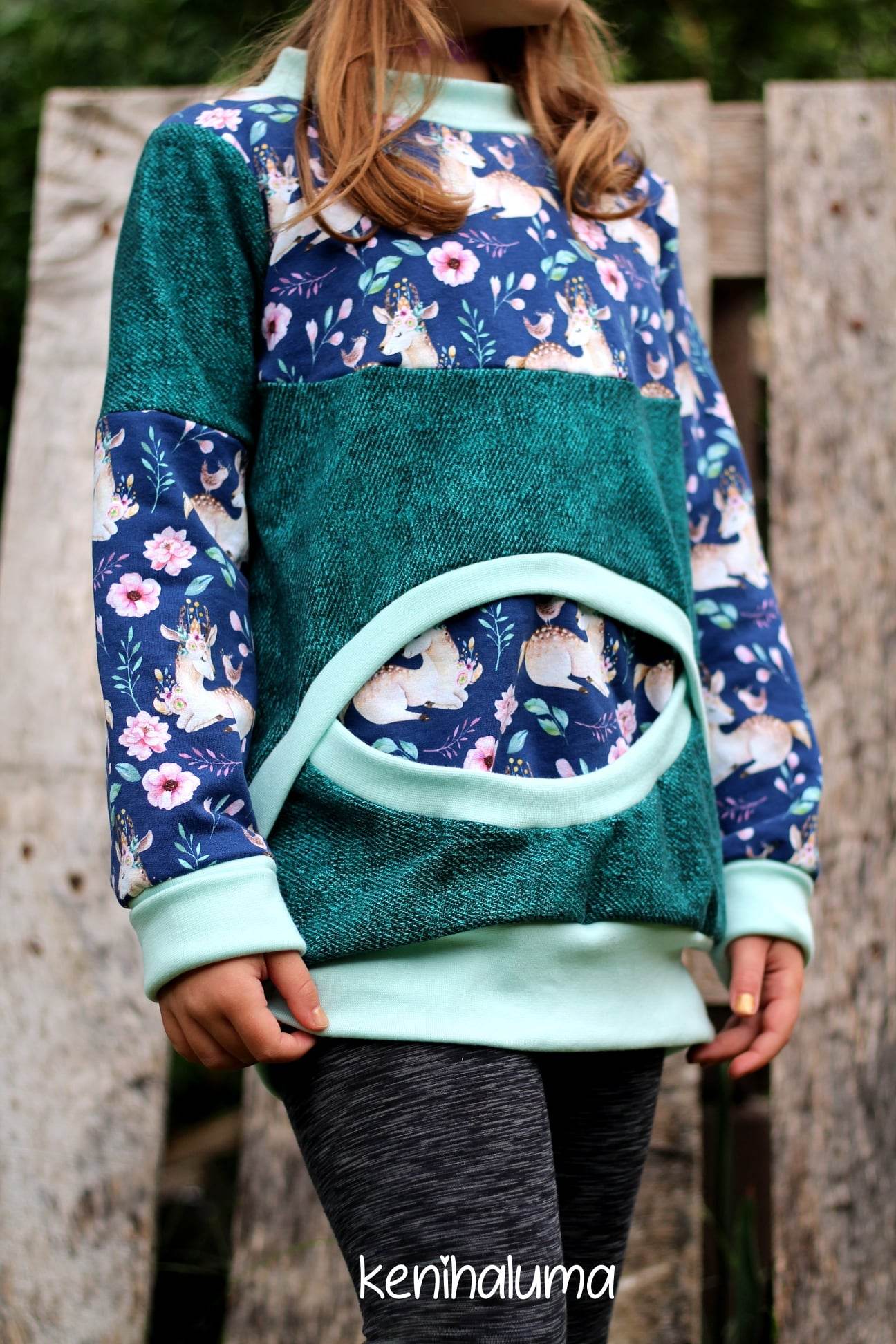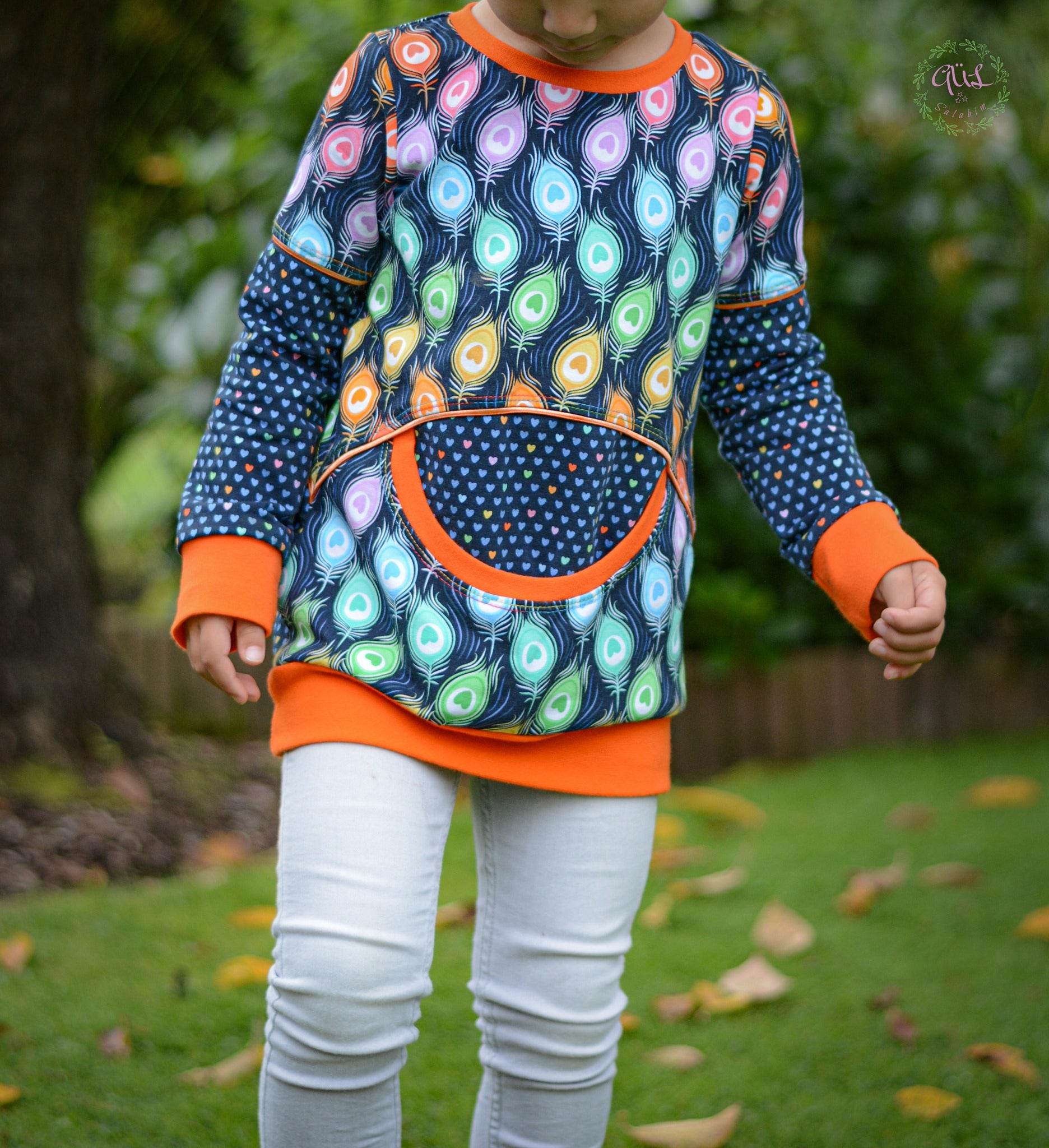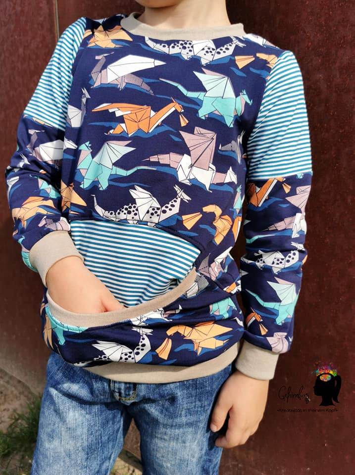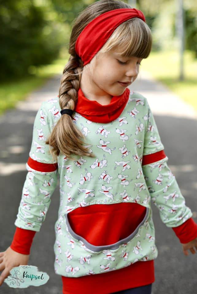 Coolbag ist ein Pulli mit großer Tasche und vielen Teilungsmöglichkeiten. Die große Tasche am Abschluss des Pullis wird durch eine kleine unsichtbare Naht in der Mitte fixiert und lässt viel Raum um kleine Dinge wie Steine, Eicheln, Kastanien usw. zu sammeln. Die Tasche kann entweder in die Teilungen integriert werden oder, falls du ein Panel hast, dass sich optisch in die Teilungen einfügt, auch aufgenäht werden. Versehen mit einem Bündchen amTascheneingriff, hängt sie nicht herunter, sondern bleibt stabil am Shirt deines Kindes. Coolbag bietet neben der Teilung, in welche die Tasche integriert ist, weitere spannende Teilungen, welche du ganz nach Belieben auswählen kannst oder einfach alle umsetzen! Abgerundet wird das Schnittmuster durch Bündchen am Abschluss sowie den Ärmelabschlüssen. Die lockere Passform sorgt für bequemen Tragekomfort. Als kleines Highlight gibt es noch drei verschiedene Krägen mit vier unterschiedlichen Umsetzungsmöglichkeiten, welche dir im Ebook genau beschrieben werden.