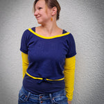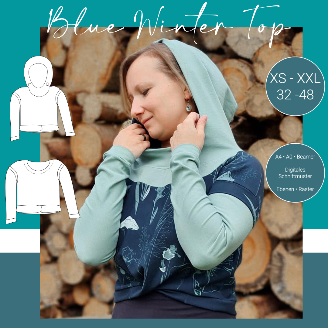 Mit dem BlueWinterTop nähst du dir ein vielseitiges, stylisches Top, das perfekt für Sport, Freizeit oder einen Shopping-Tag geeignet ist. Das Top ist in Croplänge ausgelegt und hat einen legeren Sitz. Für einen entspannten, oversized Look kannst du es auch in einer größeren Größe nähen.