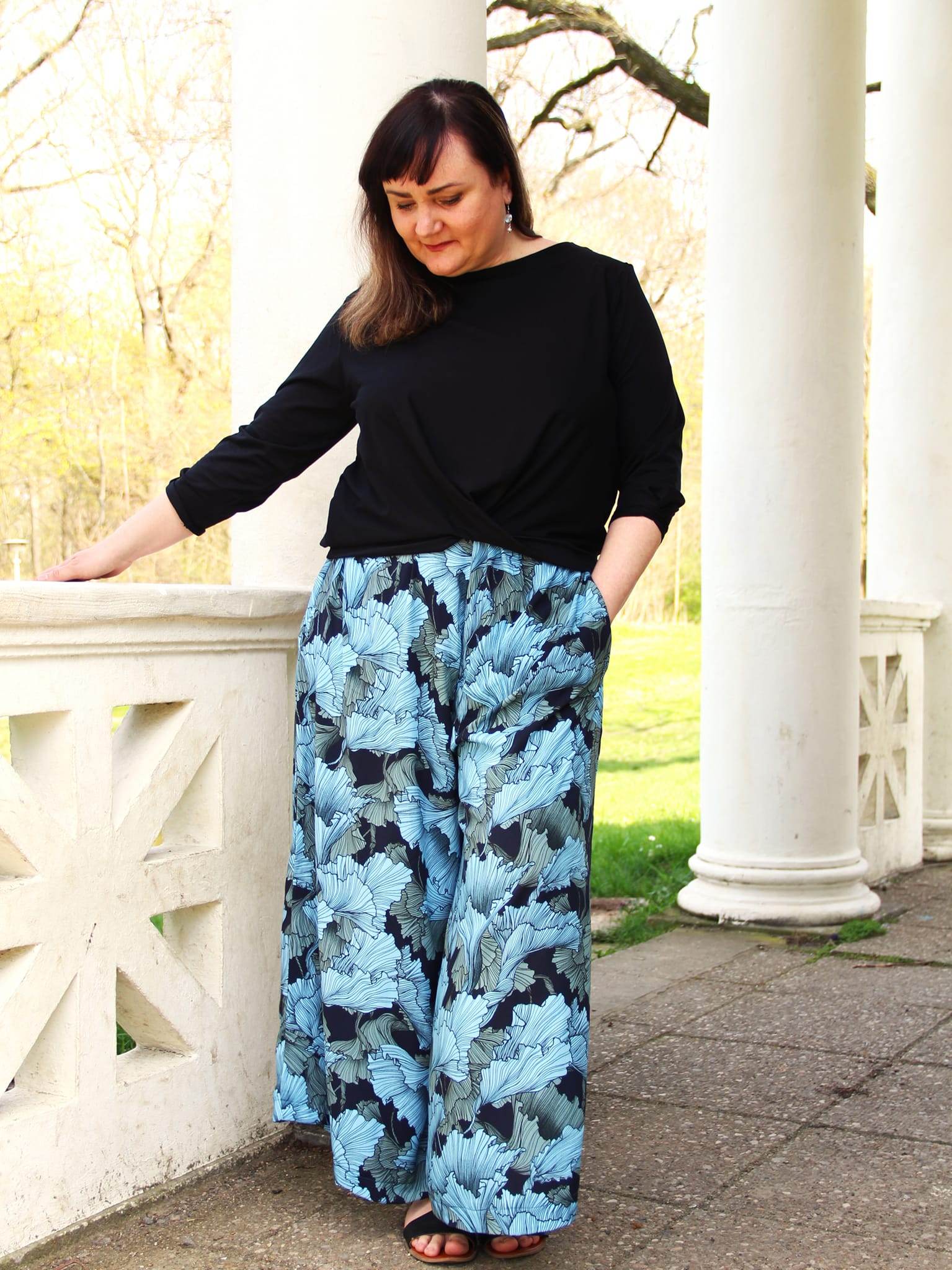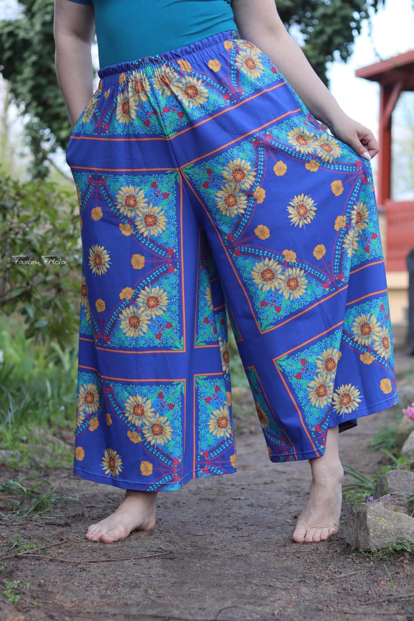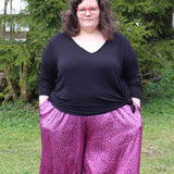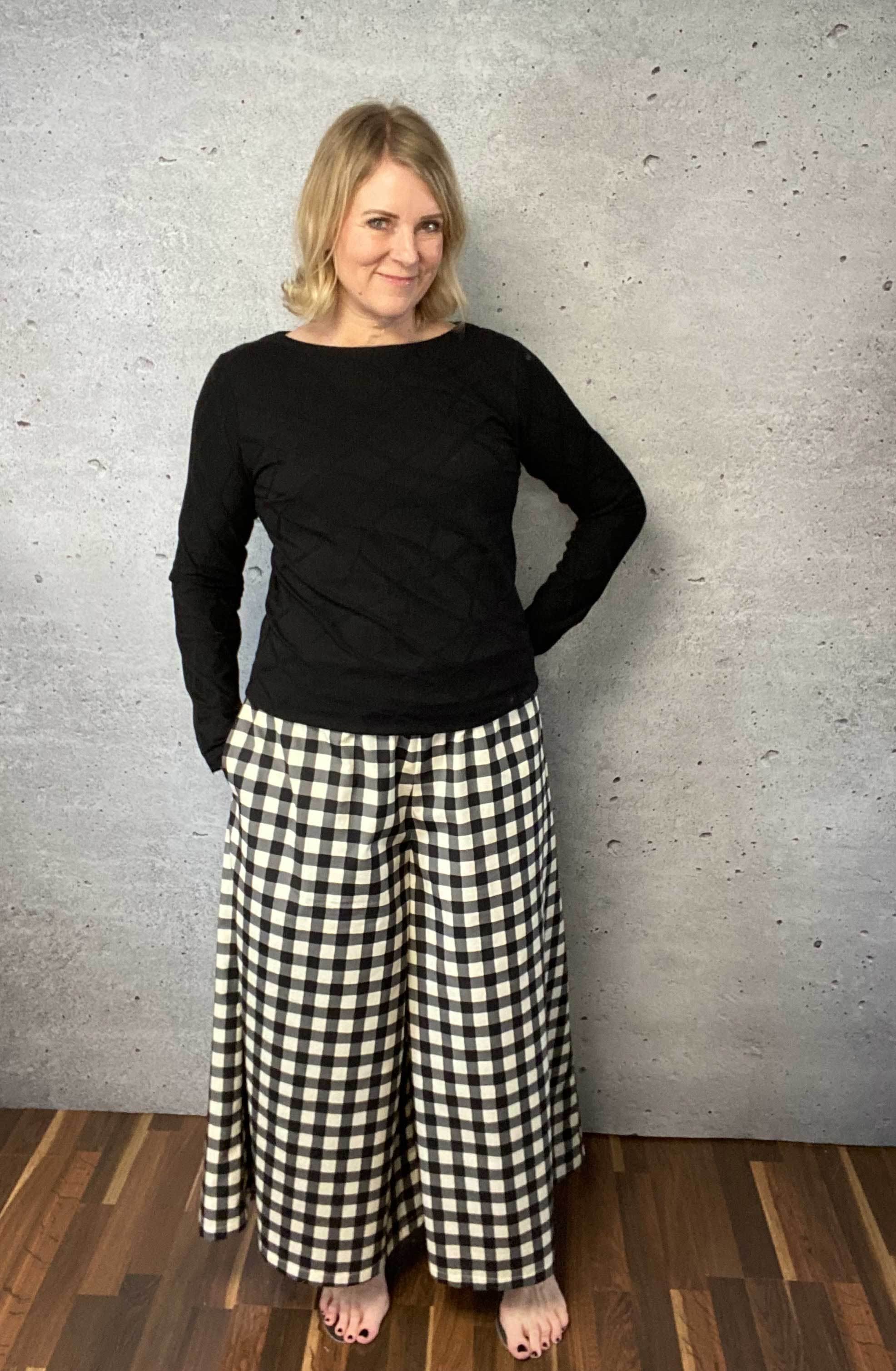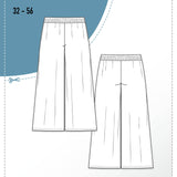 Schnittmuster zum Nähen einer bequemen, weit fallenden Culotte mit großen Nahttaschen und Gummibund